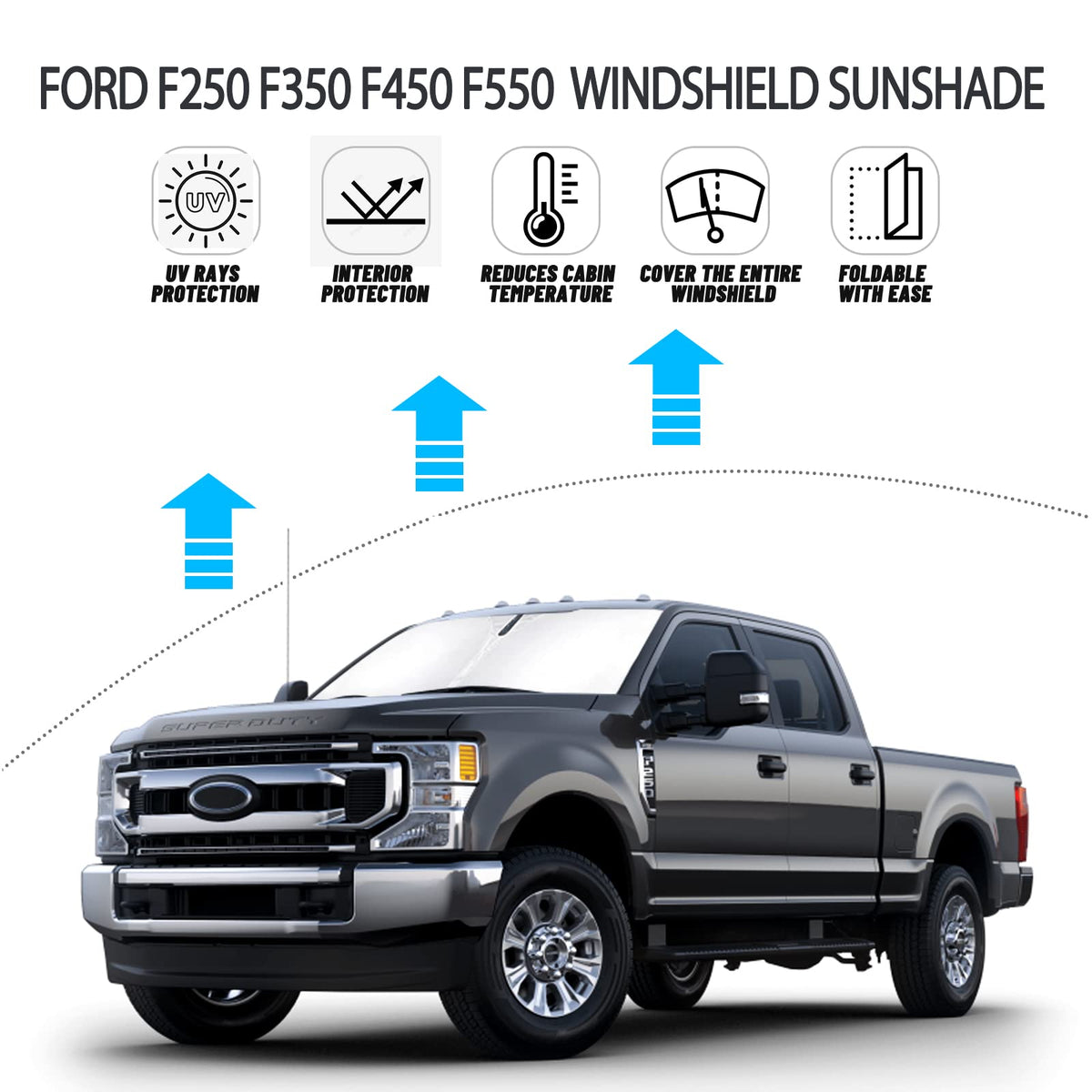 D-Lumina Windshield Sun Shade for 2017-2024 Fo-rd F250 F350 F450 F550 Super Duty 2/4 Door Accessories, Front Window Sunshade Sun Visor Protector Block UV Rays Heat, Foldable 2 Layers 210T Material