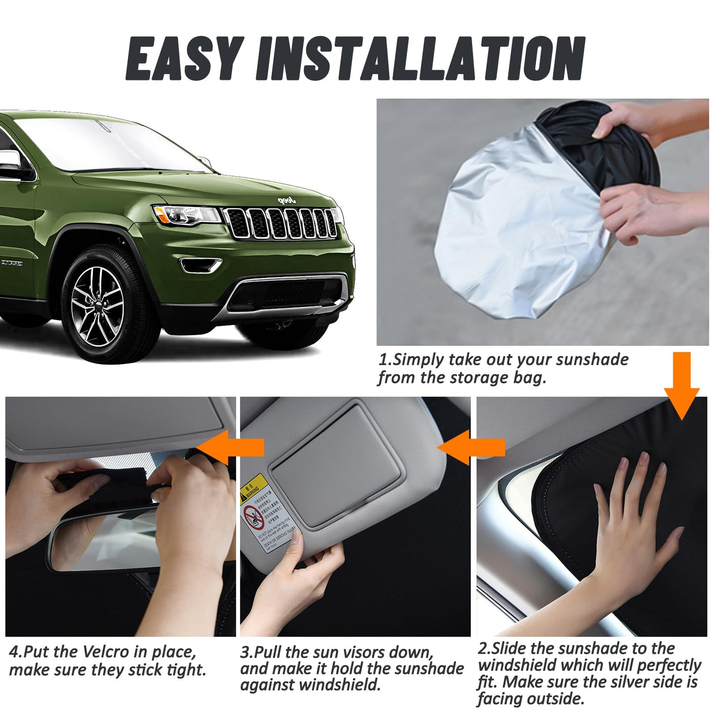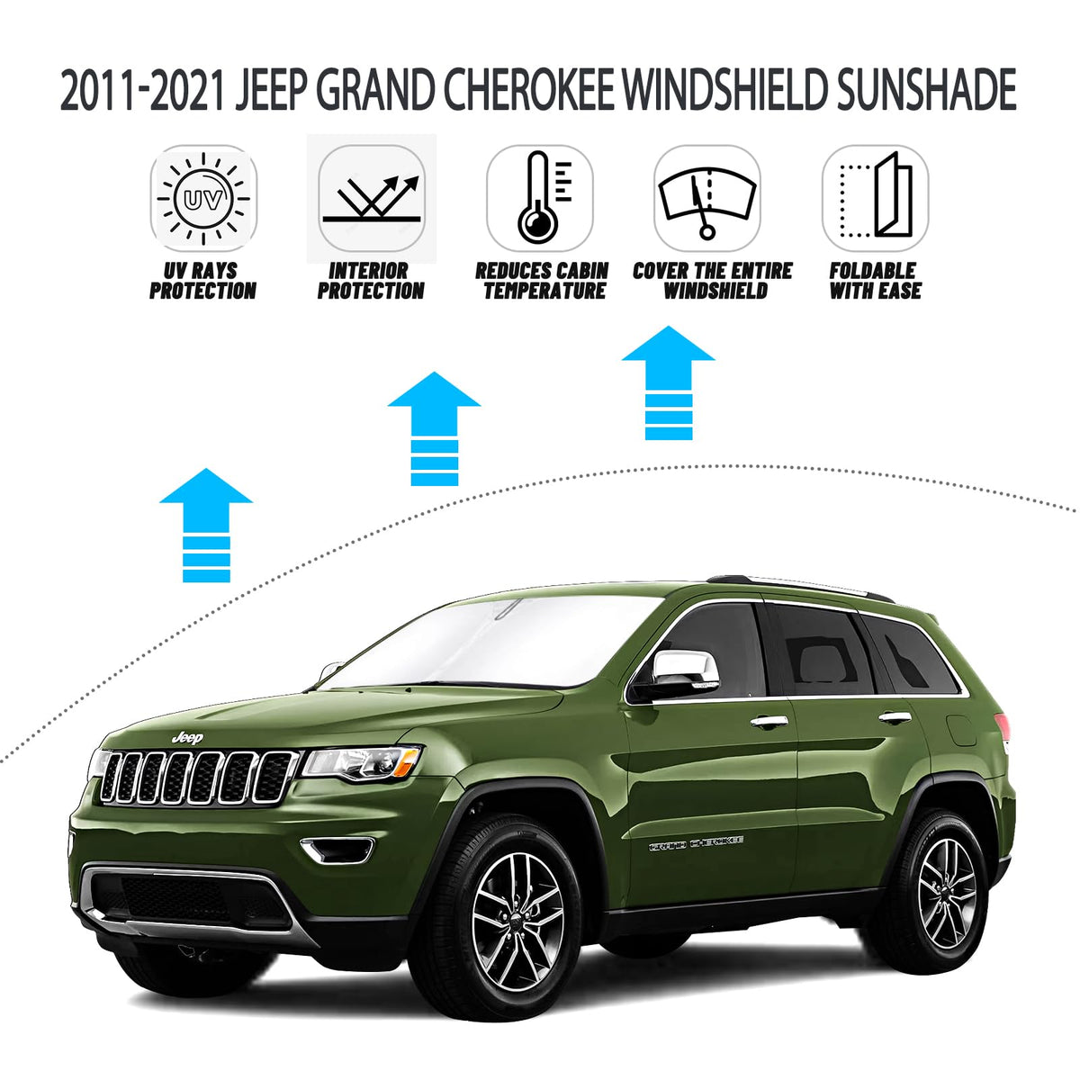 D-Lumina Windshield Sun Shade For Jee-P Grand Cherokee 2011-2021 Accessories (Not For Grand Cherokee L), Front Window Sunshade S