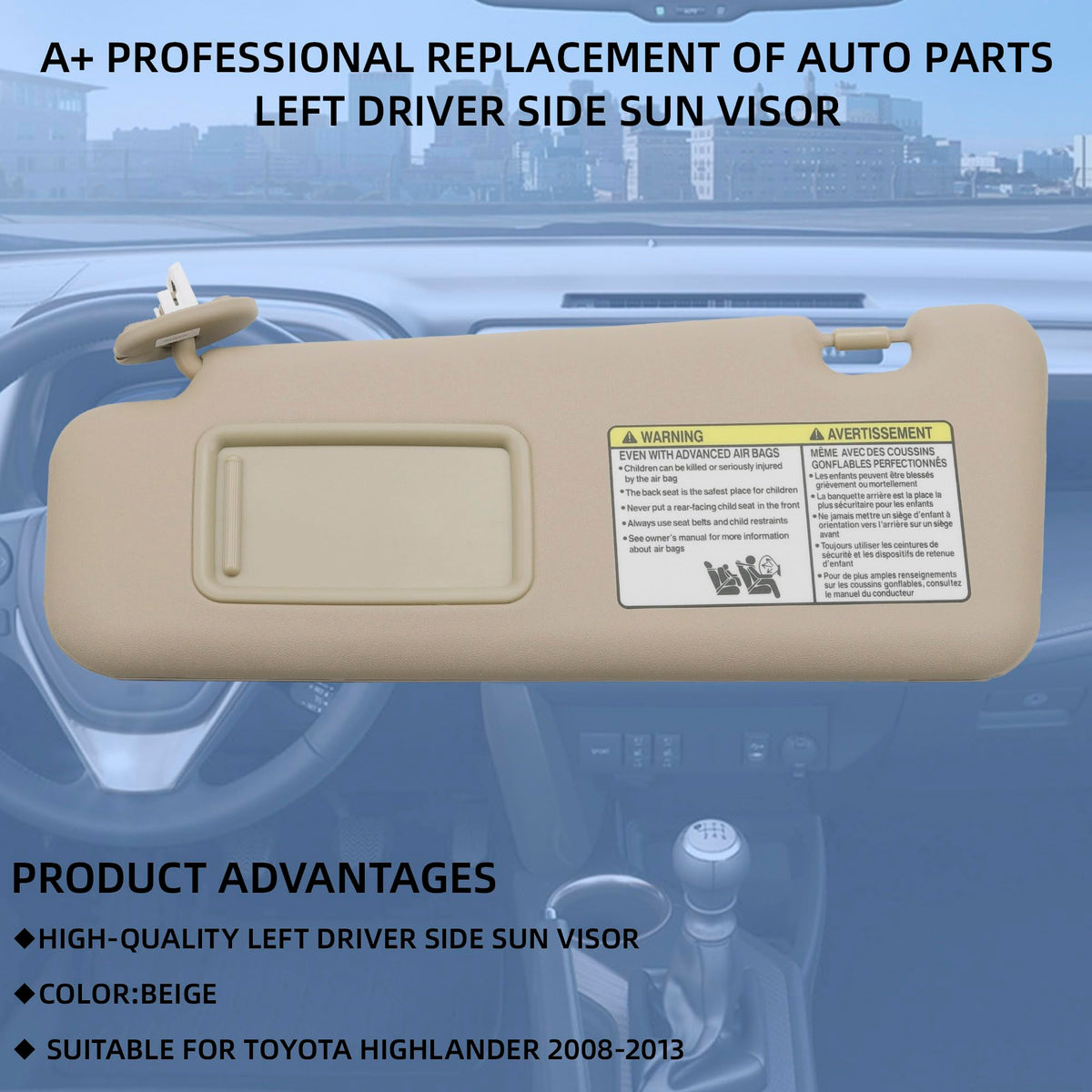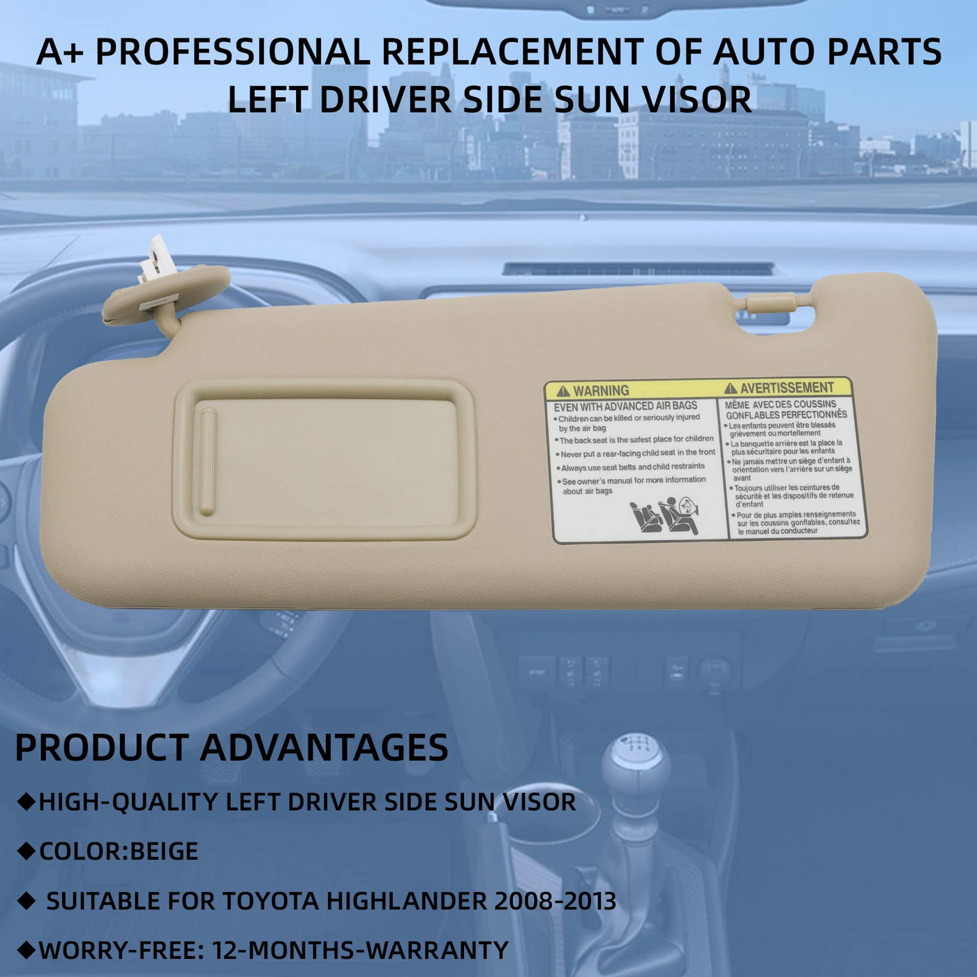 Features: OE Replace Number: 74320-48180-E0 Installation Location:Driver Side Sun Visor Vehicle Compatibility: Toyota Highlander 2008 2009 2010 2011 2012 2013 Original Specifications, Exact Match 12-Months Waranty With Worry-Free Experience