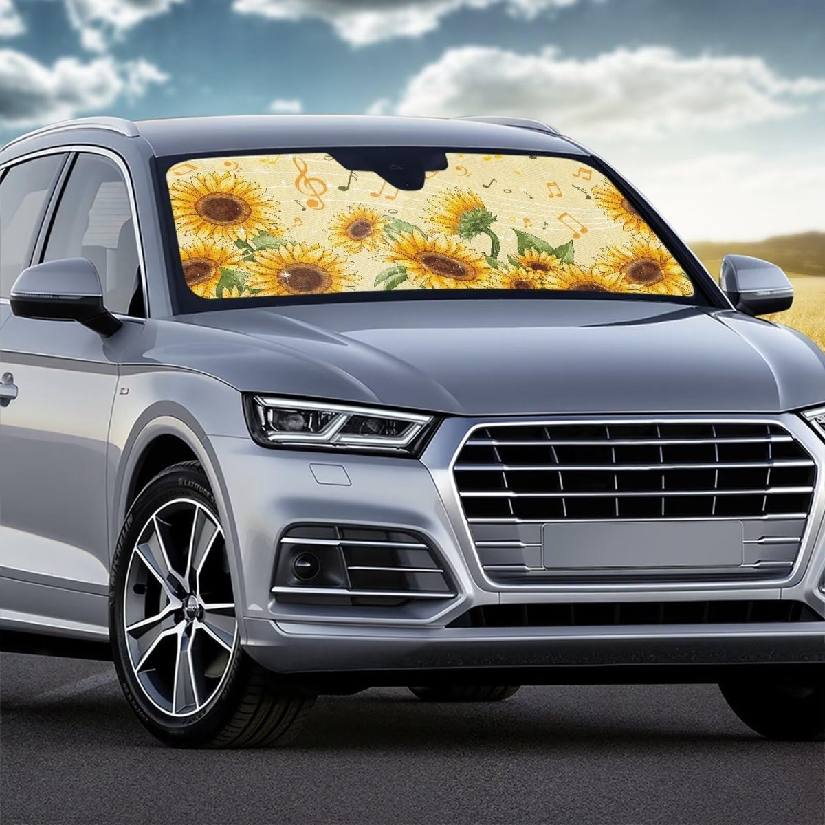 FOR U DESIGNS Sunflower Print Windshield Sun Shade Blocks UV Rays, Car Front Window Sunshade Heat Protection, Auto Sun Visor Kee