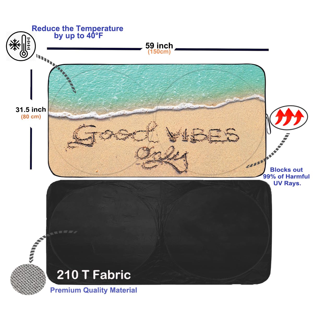 Gven Sun Shade For Car Windshield, Good Vibes Beach Style Car Windshield Sun Shade For Heat Protection Funny Car Accessories For Men& Women (Good Vibes, S)