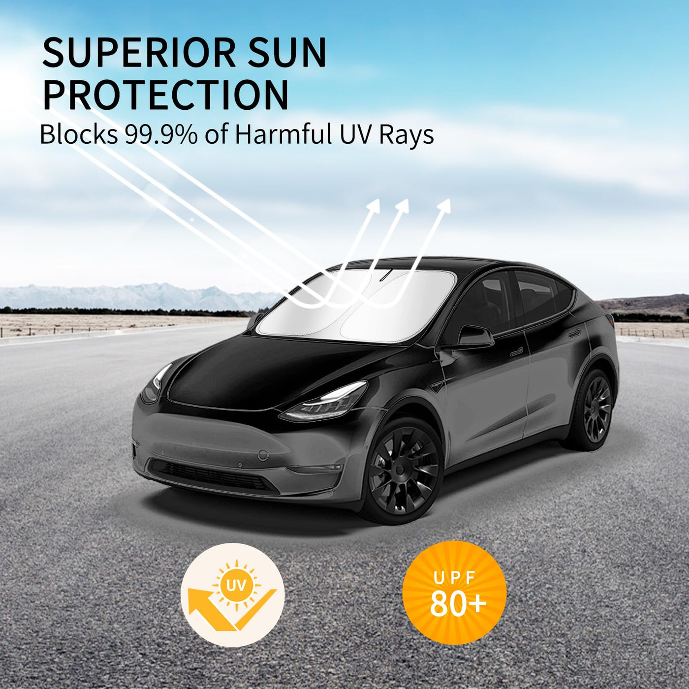 Kboise 2025 Upgrade Professional Windshield Sun Shade For Tesla Model 3/Y 2016-2025, Innovative No-Light-Pass Technology For Max