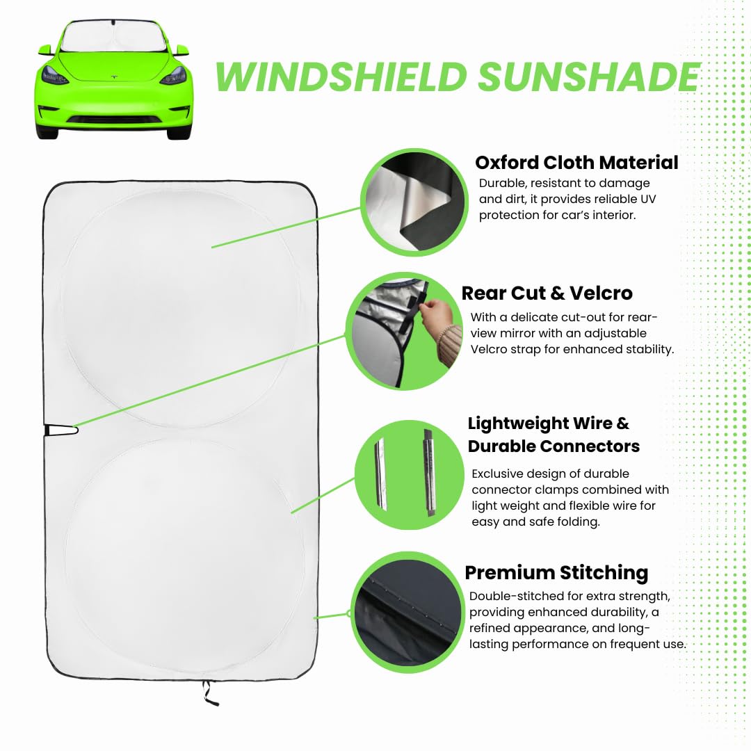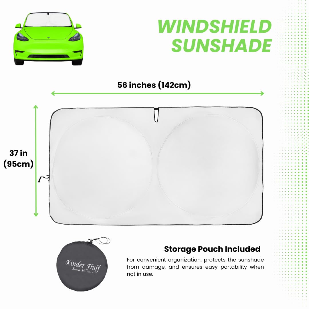 Kinder Fluff Patented Windshield Sun Shade For Teslas 3 & Y | Oxford Cloth Foldable Car Sun Shield | Thicker Window Shades For T