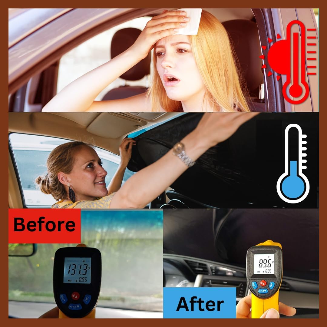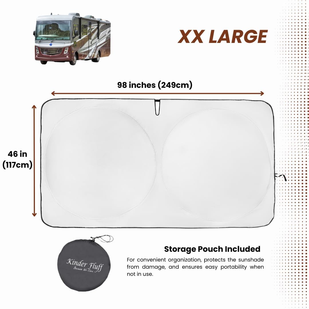 Kinder Fluff Patented Windshield Sunshade For Rv | Oxford Cloth Foldable Windscreen Sun Cover Blocks 99% Uvr | Thicker Sun Shade