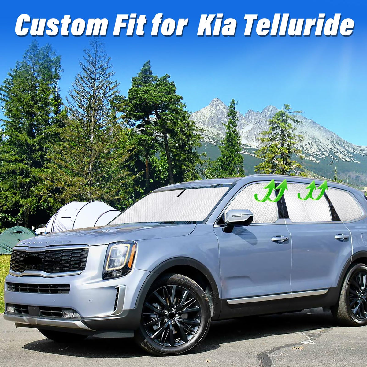 Windshield Sun Shade Replacement For Kia Telluride Accessories 2020-2025, Side Window Sun Shade Cover Sun Visor Shield Cover, Rear Window Sunshade For Camping/Baby Uv Block And Privacy Protect