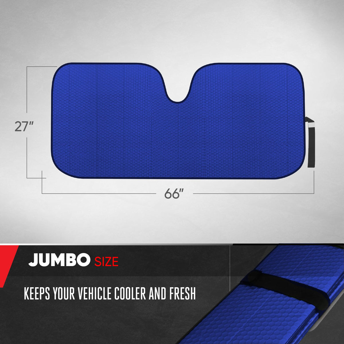 Motor Trend Blue Accordion Folding Car Windshield Sun Shade - Blackout Sun Visor For Car Windshield - Foldable Jumbo Sunshade An