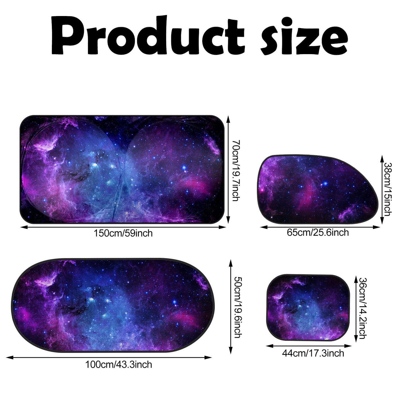Features: You can send the windshield shades for car to your family members, fellows, classmates and other people who have cars. They will feel your concern and your relationship will be promoted. The sun protector for car windshield is foldable and can be stored in a bag when you don't need them, without taking up much space. Specifications: Material: polyester Color: as pictures shown Size: Car windshield shade: about 59 x 27.6 inches/ 150 x 70 cm Rear window shade: about 39.4 x 19.7 inches/ 100 x 50 cm Front side window shades: about 25.6 x 15 inches/ 65 x 38 cm Rear side window shades: about 17.3 x 14.2 inches/ 44 x 36 cm Package includes: 1 x Car windshield shade 1 x Rear window shade 2 x Front side window shades 2 x Rear side window shades Warm notes: Manual measurement, please allow slight errors on size. The color may exist a slight difference due to different screen displays.