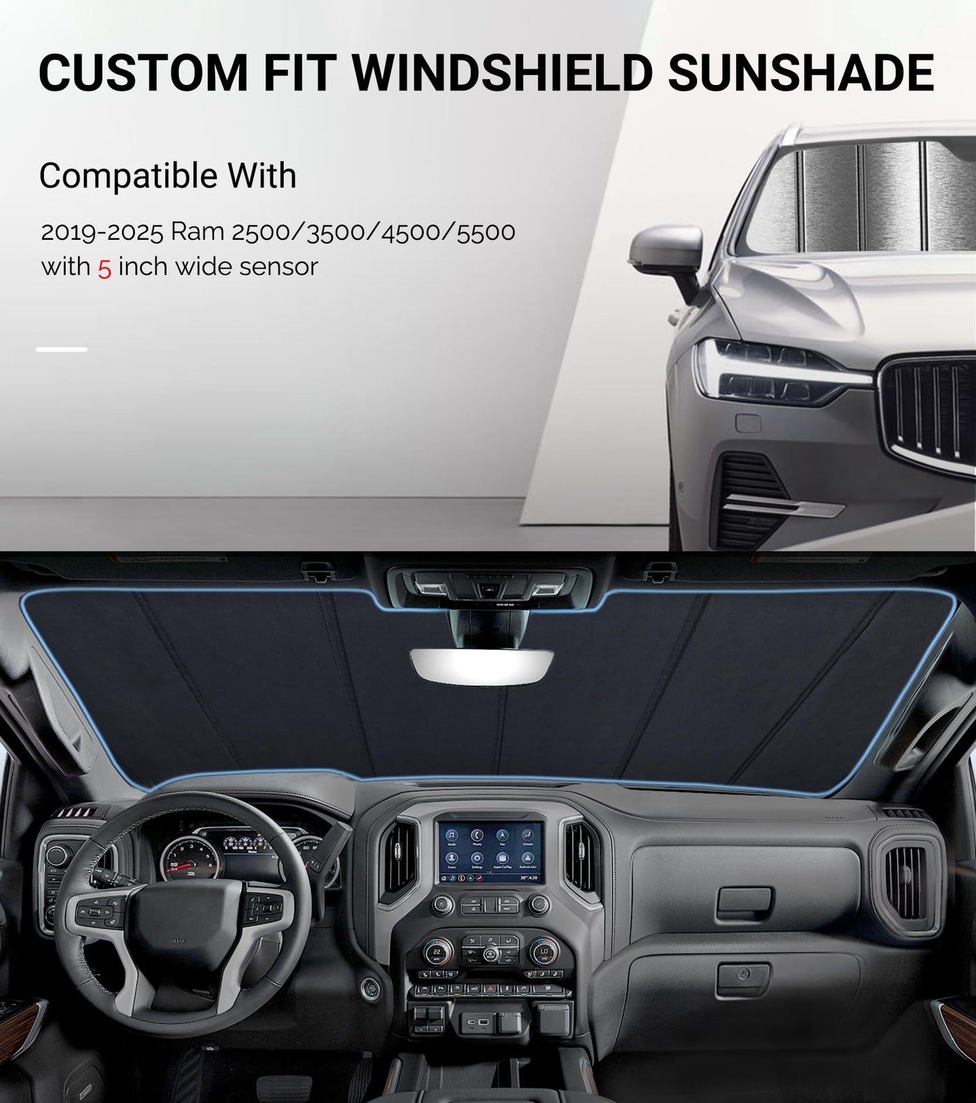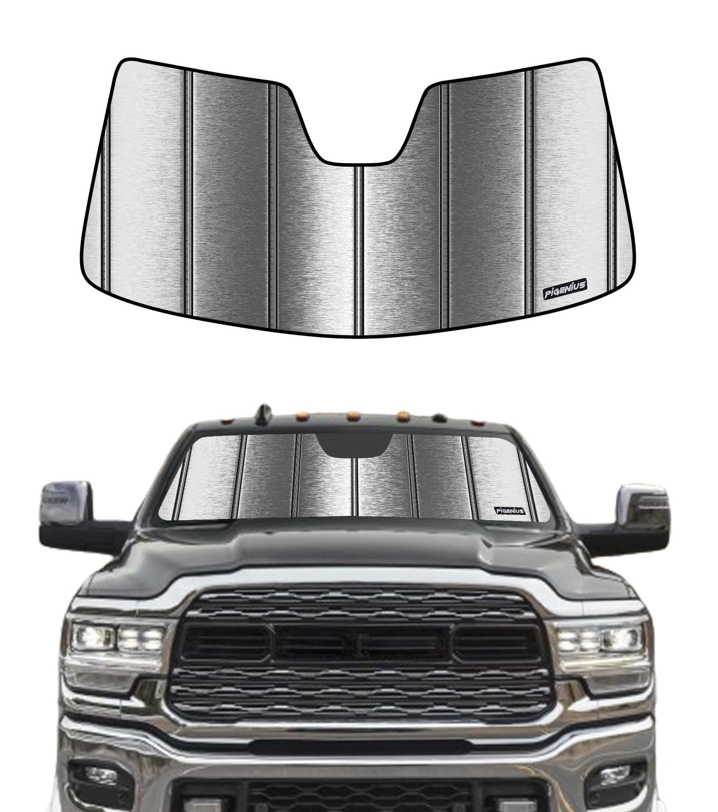 Pigenius Windshield Sunshade for Ram 2500/3500/4500/5500 2019-2025 with 5 inch Wide Sensor Front Window Shade - Metallic
