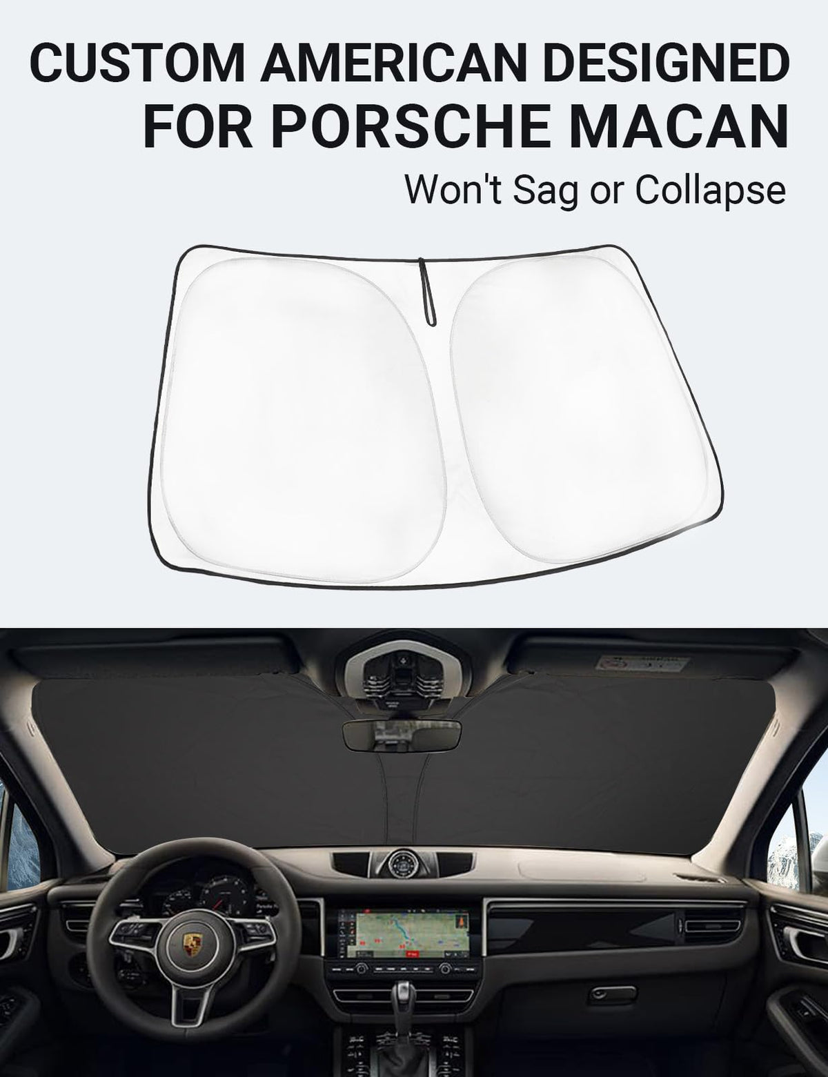 Designed In Usa!!! Custom Design: The Front Windshield Shade Has Been Custom Cut Specifically For Porsche Macan. Precise Fit Design And Reinforced Steel Rings Make A Precise And Secure Fit To The Window, No Need To Use Suction Cups To Hold It In Place. It Won 'T Sag Or Collapse Like Other Car Heat Shields. Fits For Porsche Macan 2025 2024 2023 2022 2021 2020 2019 2018 2017 2016 2015 2014.