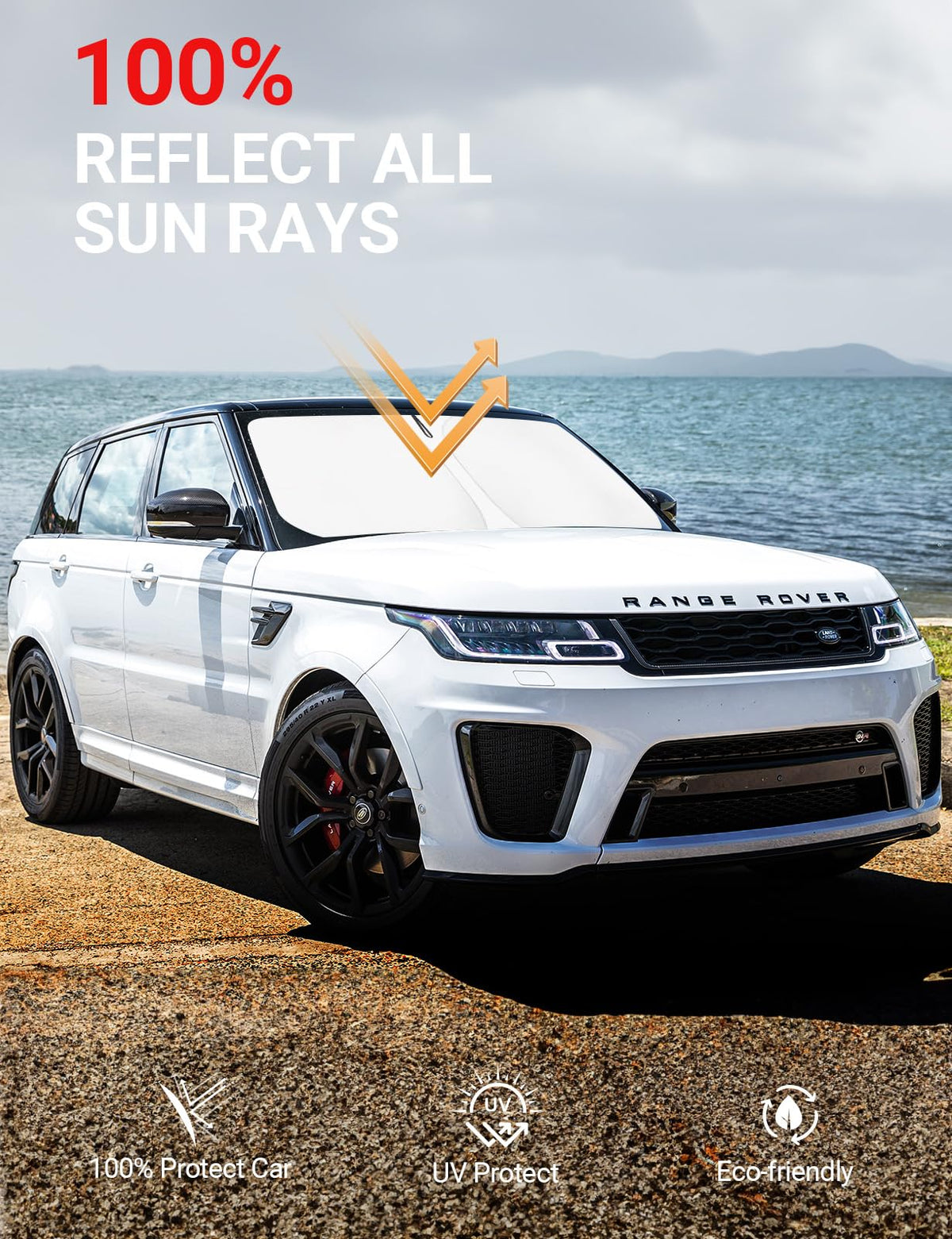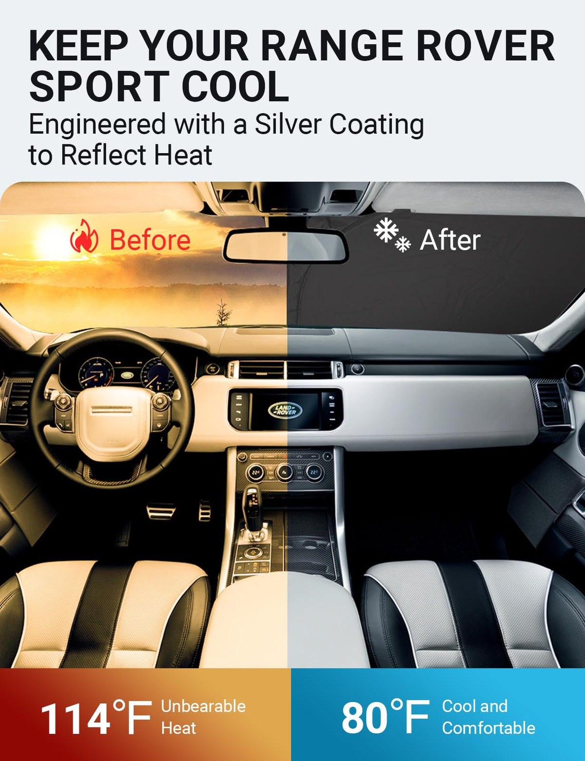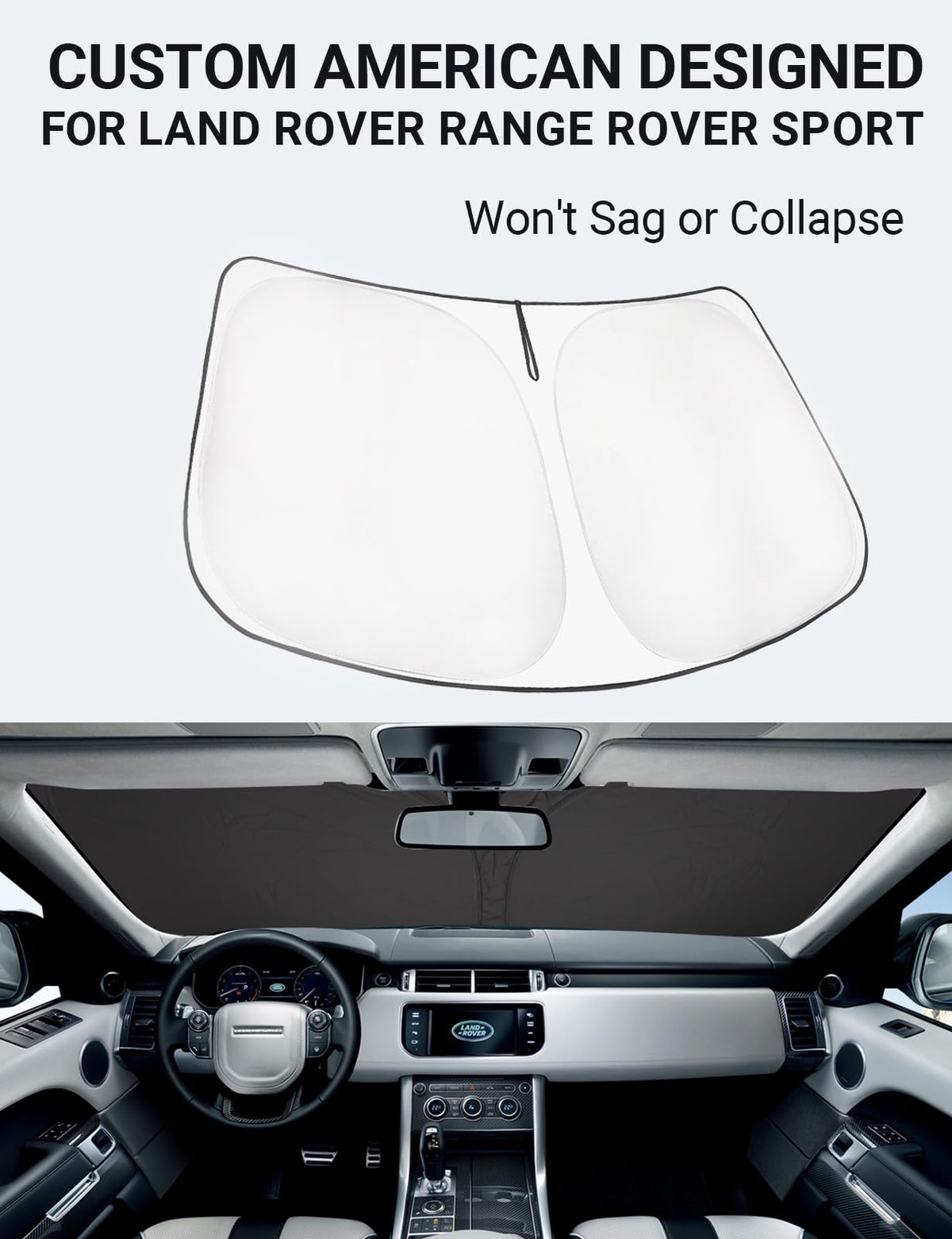 Designed In Usa!!! Custom Design: The Front Windshield Shade Has Been Custom Cut Specifically For Land Rover Range Rover Sport. Precise Fit Design And Reinforced Steel Rings Make A Precise And Secure Fit To The Window, No Need To Use Suction Cups To Hold It In Place. It Won 'T Sag Or Collapse Like Other Car Heat Shields. Fits For Land Rover Range Rover Sport 2022 2021 2020 2019 2018 2017 2016 2015 2014.