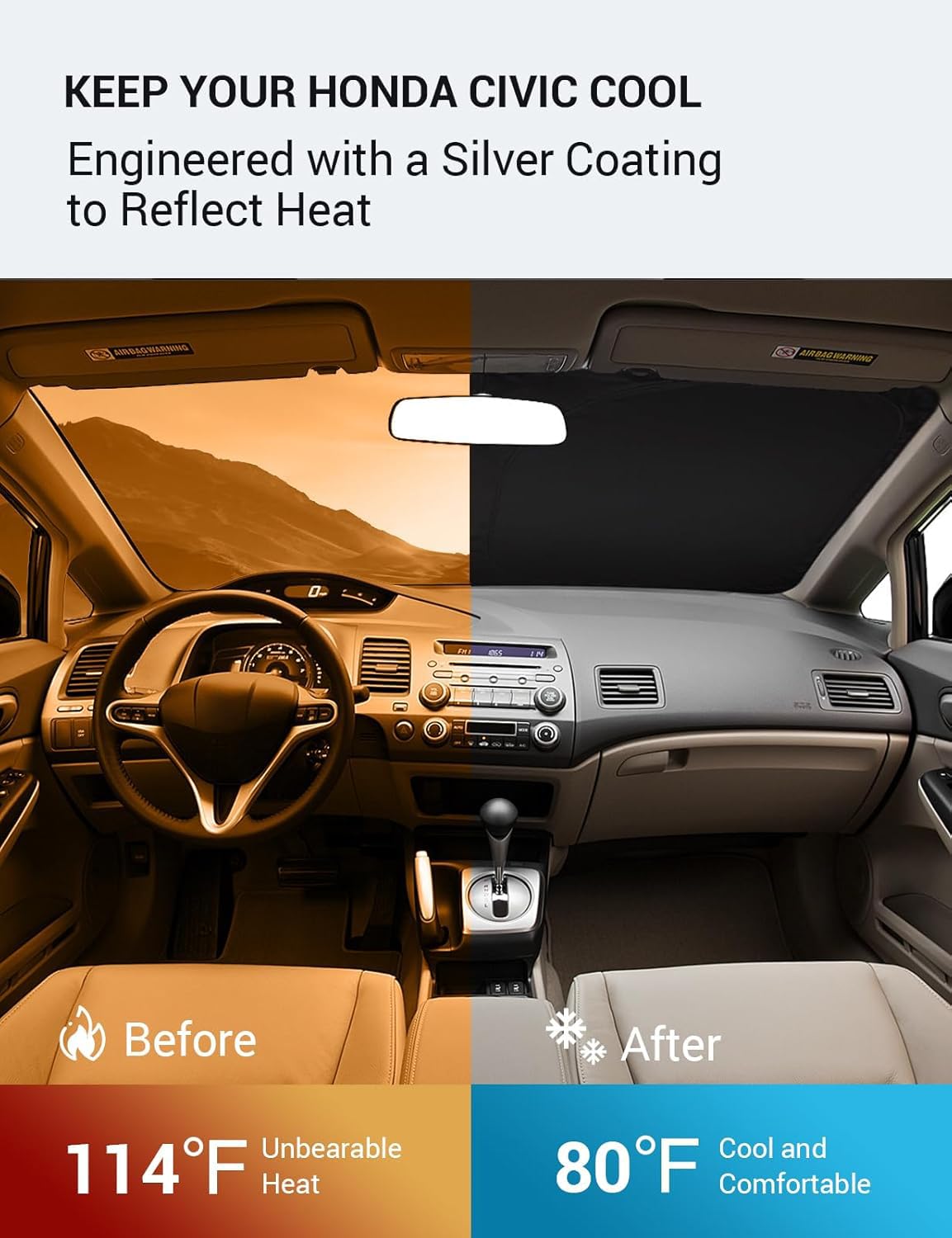 Proadsy 2025 Upgrade Windshield Sun Shade Custom Fit 2006-2011 Honda Civic Foldable Front Sunshade Protector Sun Visor Blocks Uv