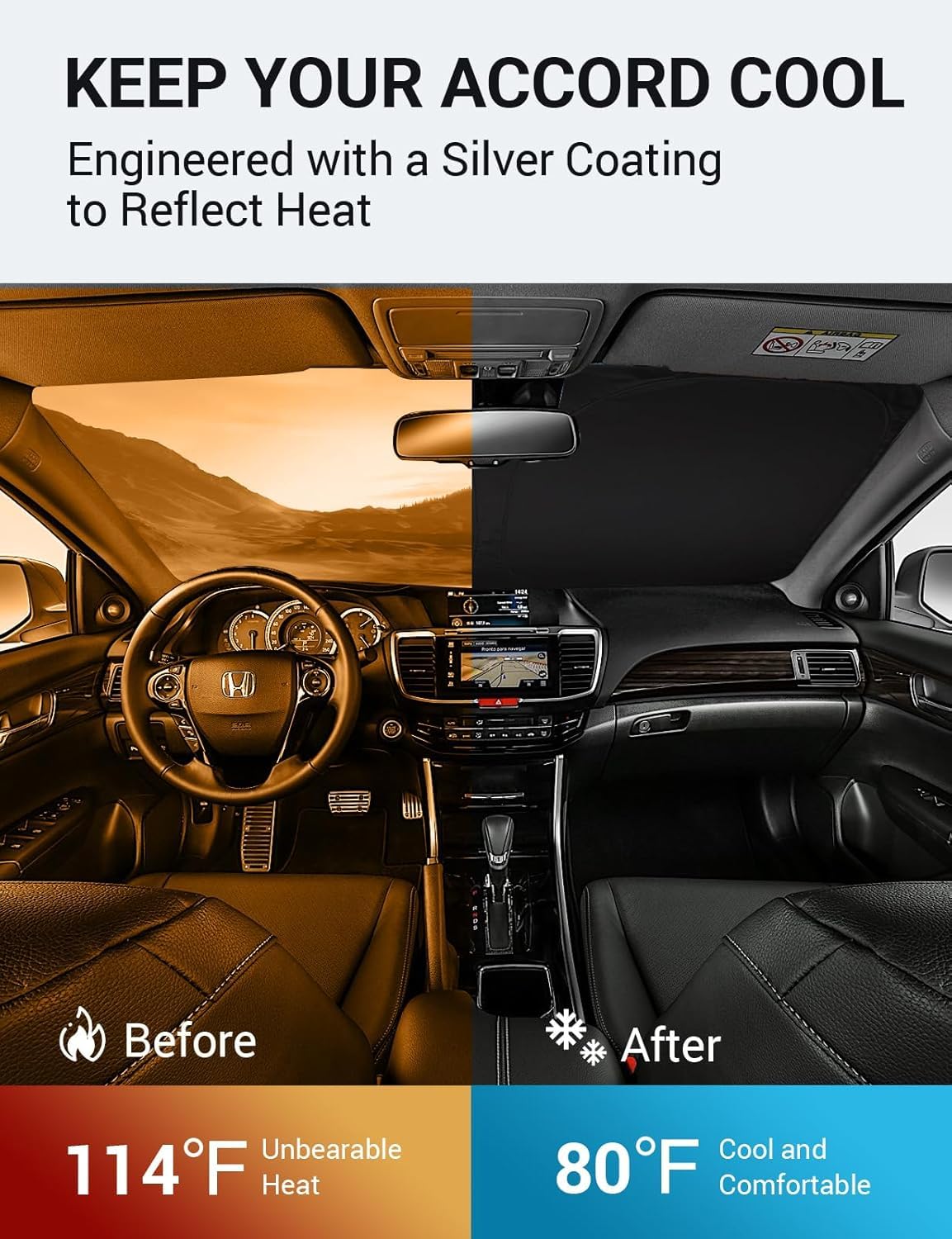 Proadsy 2025 Upgrade Windshield Sun Shade Custom Fit 2008-2012 Honda Accord Foldable Front Sunshade Protector Sun Visor Blocks U