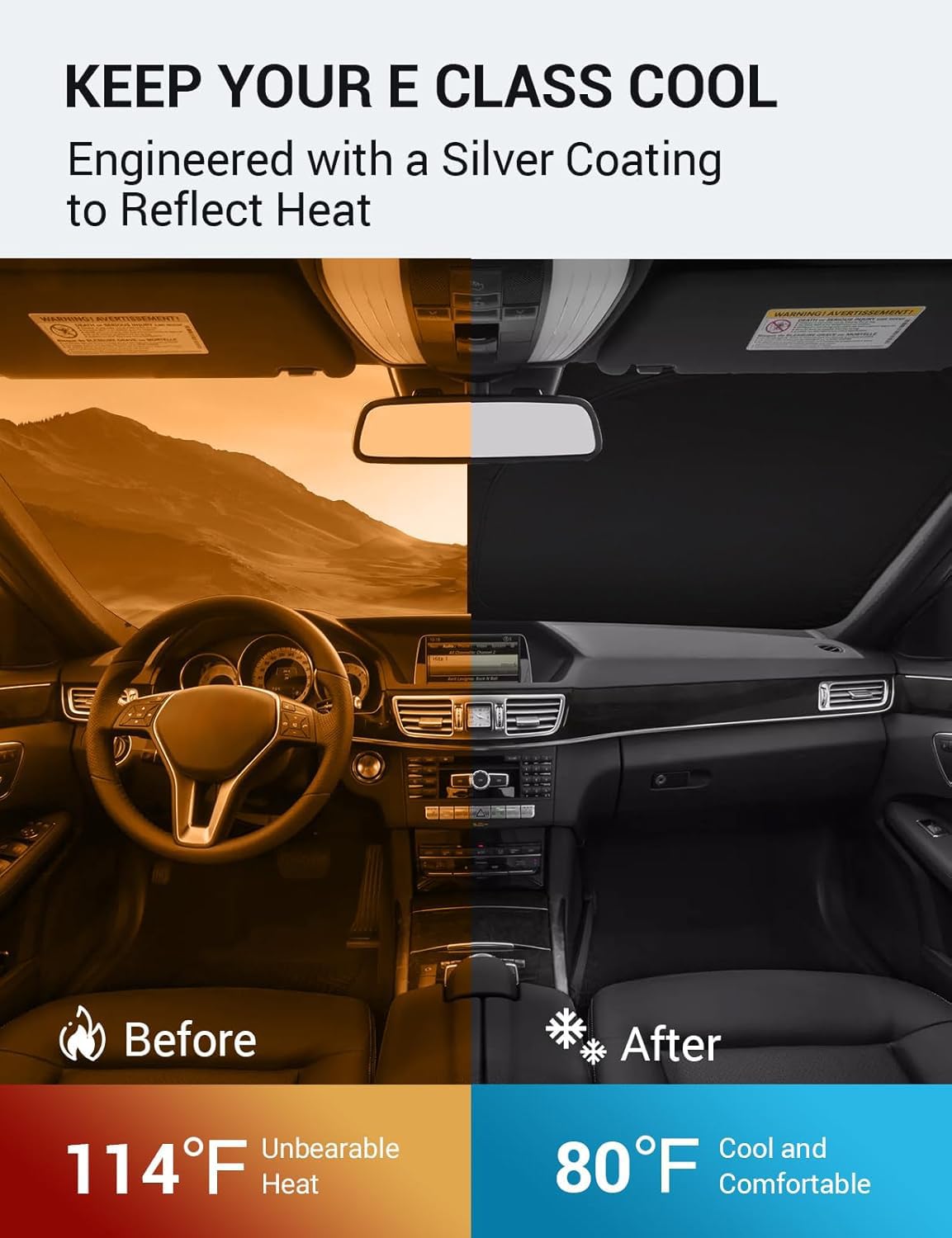 Proadsy 2025 Upgrade Windshield Sun Shade Custom Fit 2010-2016 Mercedes Benz E Class Foldable Front Sunshade Protector Sun Visor