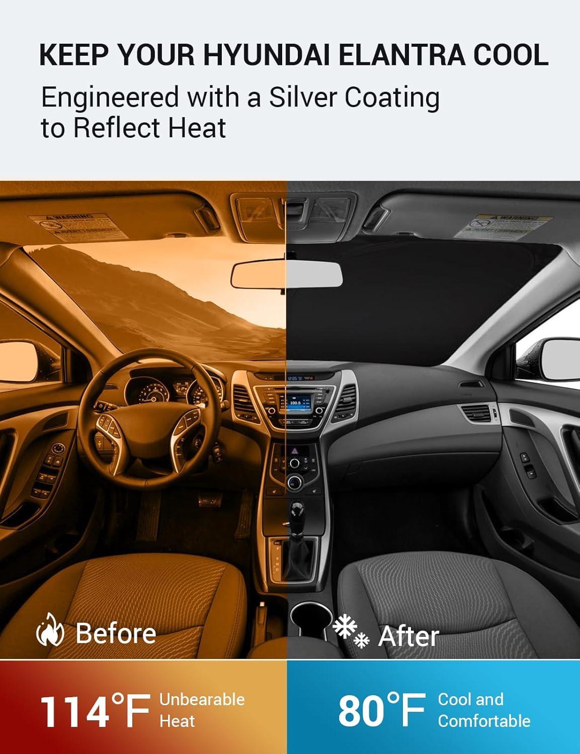 Proadsy 2025 Upgrade Windshield Sun Shade Custom Fit 2011-2016 Hyundai Elantra Foldable Front Sunshade Protector Sun Visor Block