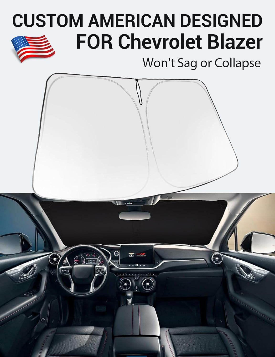Proadsy 2025 Upgrade Windshield Sun Shade Custom Fit 2019-2023 2024 2025 Chevrolet Blazer Foldable Front Sunshade Protector Sun
