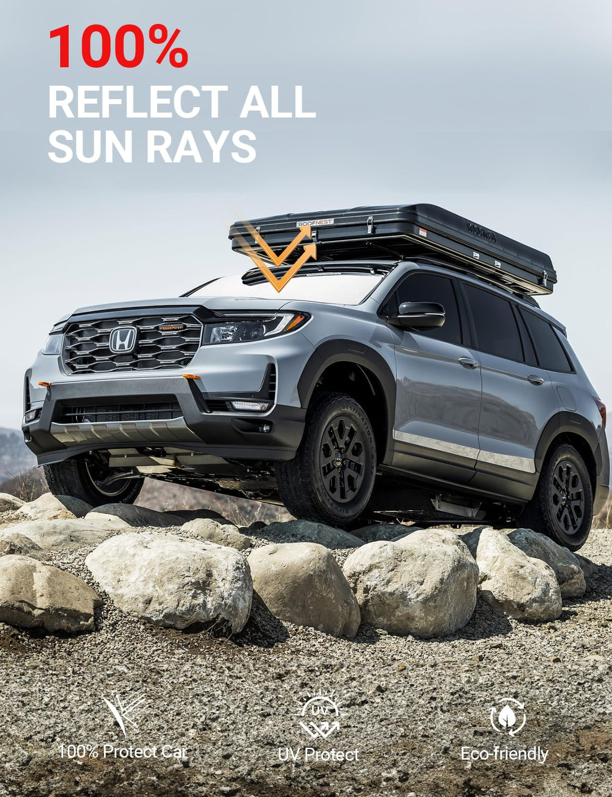 Designed In Usa!!! Custom Design: The Front Windshield Shade Has Been Custom Cut Specifically For Honda Passport. Precise Fit Design And Reinforced Steel Rings Make A Precise And Secure Fit To The Window, No Need To Use Suction Cups To Hold It In Place. It Won 'T Sag Or Collapse Like Other Car Heat Shields. Fits For Honda Passport 2025 2024 2023 2022 2021 2020 2019.