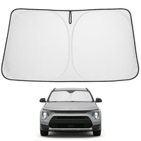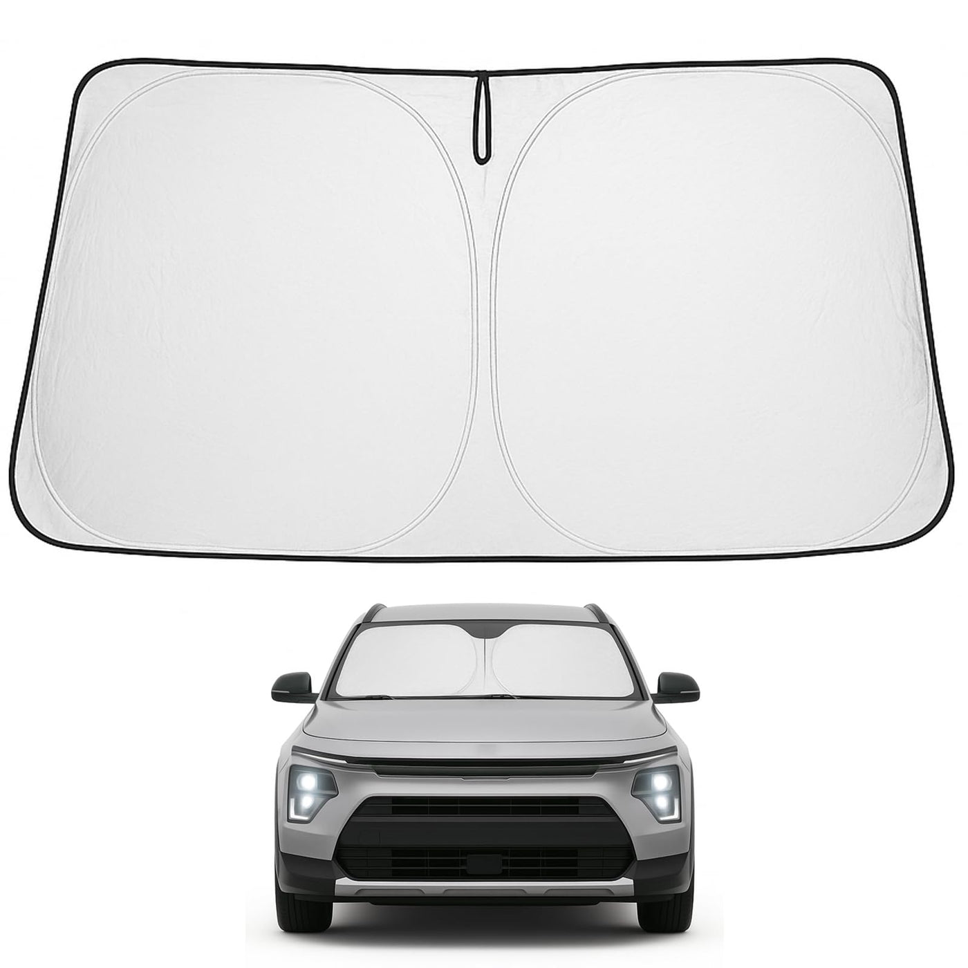 DESIGNED IN USA!!! Custom Design: The front windshield shade has been custom cut specifically for Kia Niro. Precise fit design and Reinforced steel rings make a precise and secure fit to the window, no need to use suction cups to hold it in place. It won 't sag or collapse like other car heat shields. Fits all Kia Niro 2017 2018 2019 2020 2021 2022.