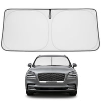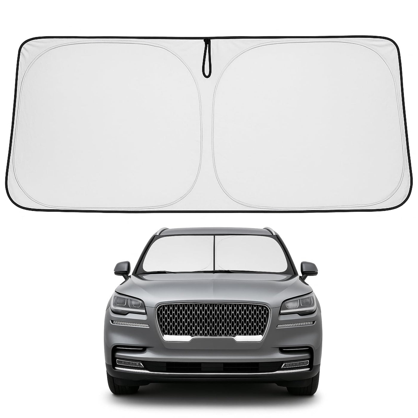 DESIGNED IN USA!!! Custom Design: The front windshield shade has been custom cut specifically for Lincoln Aviator. Precise fit design and Reinforced steel rings make a precise and secure fit to the window, no need to use suction cups to hold it in place. It won 't sag or collapse like other car heat shields. Fits all Lincoln Aviator 2020 2021 2022 2023 2024 2025.