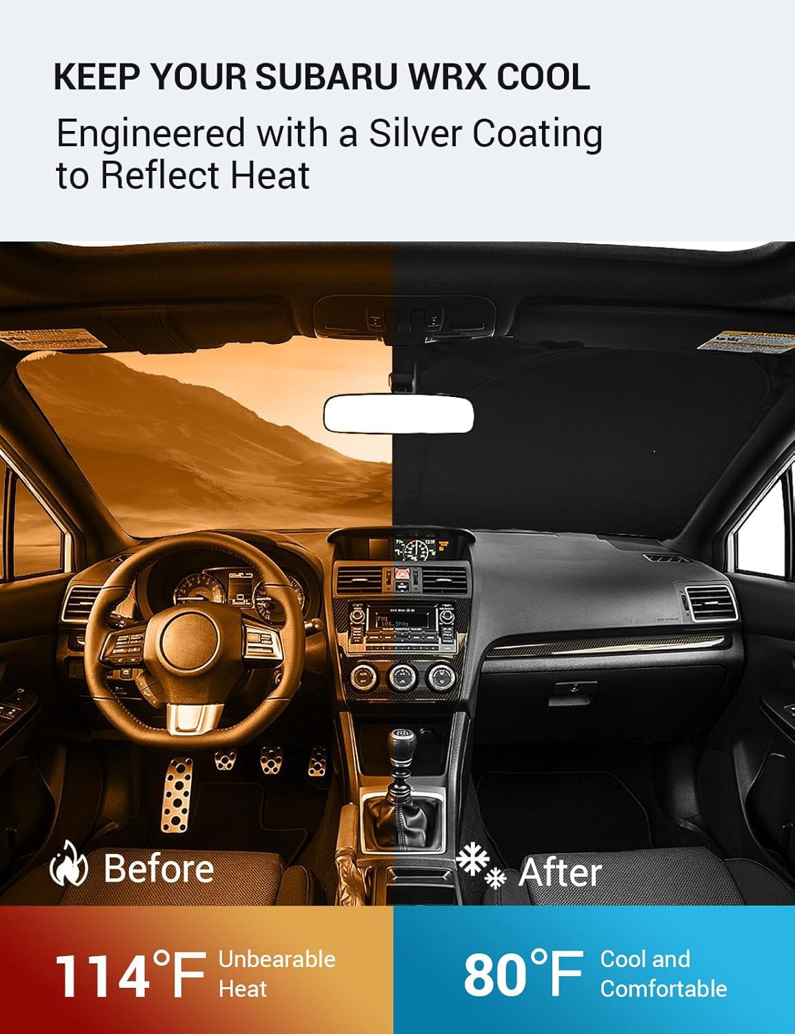 Proadsy 2025 Upgrade Windshield Sun Shade Custom Fit Subaru Wrx 2008-2015 4-Layer Foldable Front Sunshade Protector Sun Visor Bl