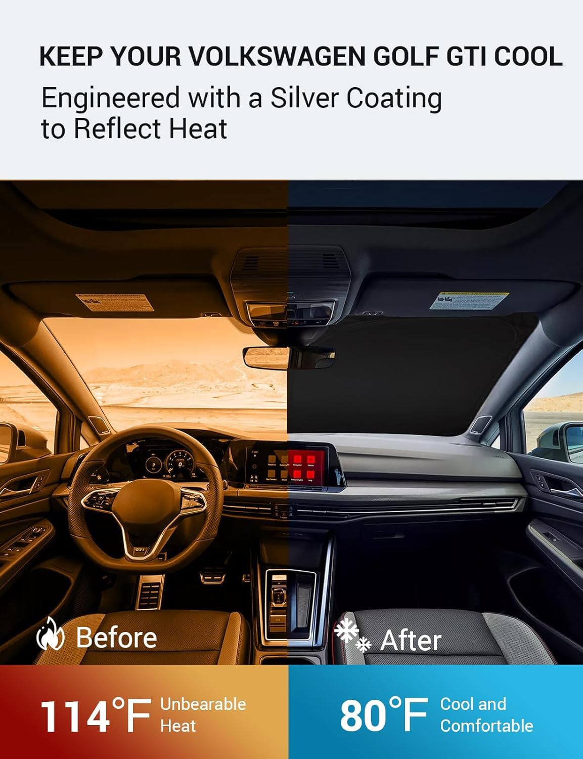 Proadsy 2025 Upgrade Windshield Sun Shade Custom Fit Volkswagen Golf Gti Mk8 2022-2025 4-Layer Foldable Front Sunshade Protector