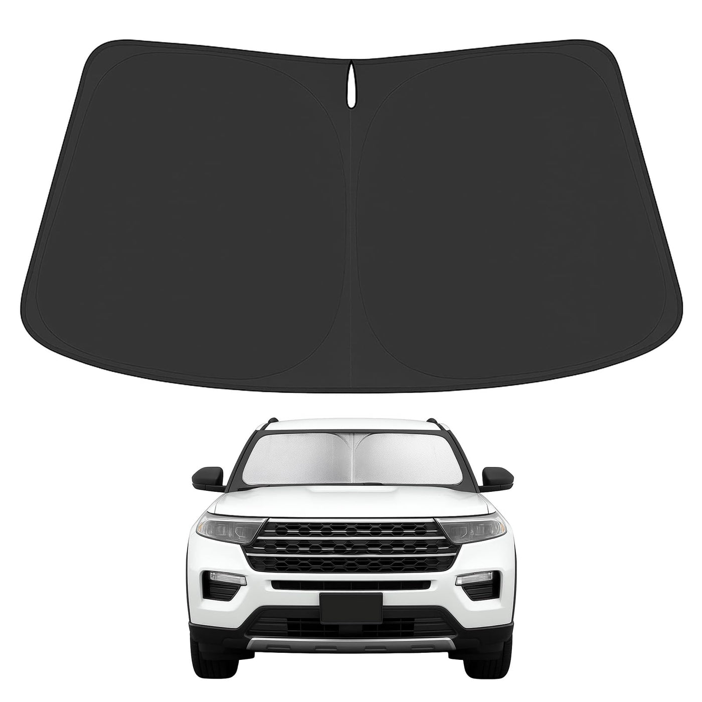 DESIGNED IN USA!!! Custom Design: The front windshield shade has been custom cut specifically for Ford Explorer. Precise fit design and Reinforced steel rings make a precise and secure fit to the window, no need to use suction cups to hold it in place. It won't sag or collapse like other car heat shields. Fits all 2025 2024 2023 2022 2021 2020 Ford Explorer SUV, ST XLT, Limited, Platinum.