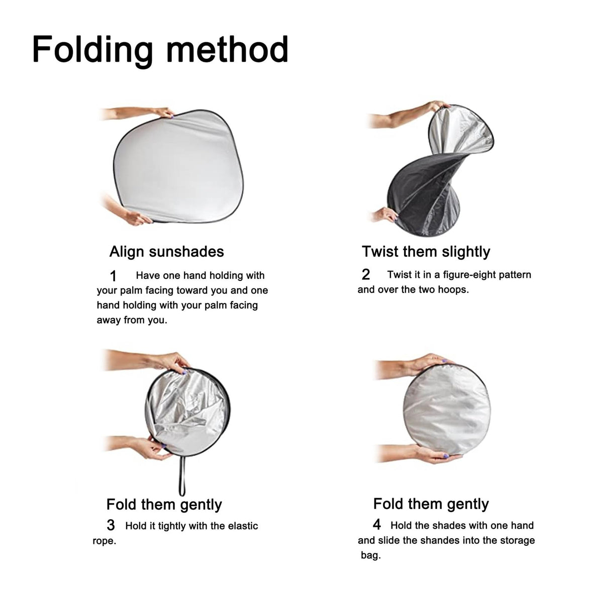 Material: High Quality 210T Polyester Size: 25.5 x 28.5 inch Package : 2pcs Shade -Printing: One-sided printing. With unique and vibrant design, which can help you quickly spot your car in parking lot. -keep the car cool by blocking the sun - it protects from sun damage as well. -This is ideal to protect children and babies from harmful UV and heat during warm months and on sunny days. -Also helps keep the entire car cool for greater comfort and savings. -Compact folding design allow for easy storage in glove compartment or door pocket. -Easily pops open, installs in seconds, safe, and convenient to use! -Lightweight but strong and durable. -Fits perfectly to most compact cars, such as cars, SUVs, small trucks or trucks. How to folding the shade : STEP 1: ALIGN THE SHADES. MAKE SURE THAT THE FRAMES STAY EVEN. STEP 2: GRAB THE TOP LEFT AND BOTTOM RIGHT CORNERS AND TWIST IN OPPOSITE DIRECTION. STEP 3: PUSH YOUR HANDS TOGETHER. IT WILL AUTOMATICALLY FOLD BACK UP. STEP 4: WRAP IT WITH THE ELASTIC BAND AND STORE IN THE STORAGE BAG.