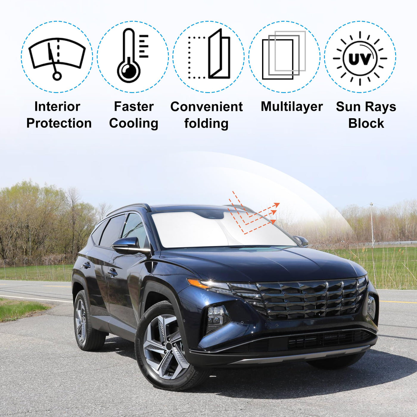 Yycke Windshield Sun Shade Accessories Compatible With 2022-2024 2025 Tucson For Hyundai Foldable Sunshade Sun Visor Blocks Uv