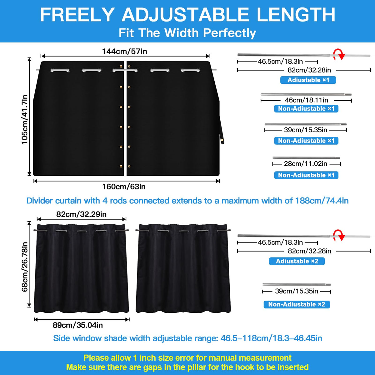 Zatooto Car Window Shades With Rods Set Of 3, Side Window Shade For Back Window & Privacy Blackout Car Divider Curtain Set Opaqu