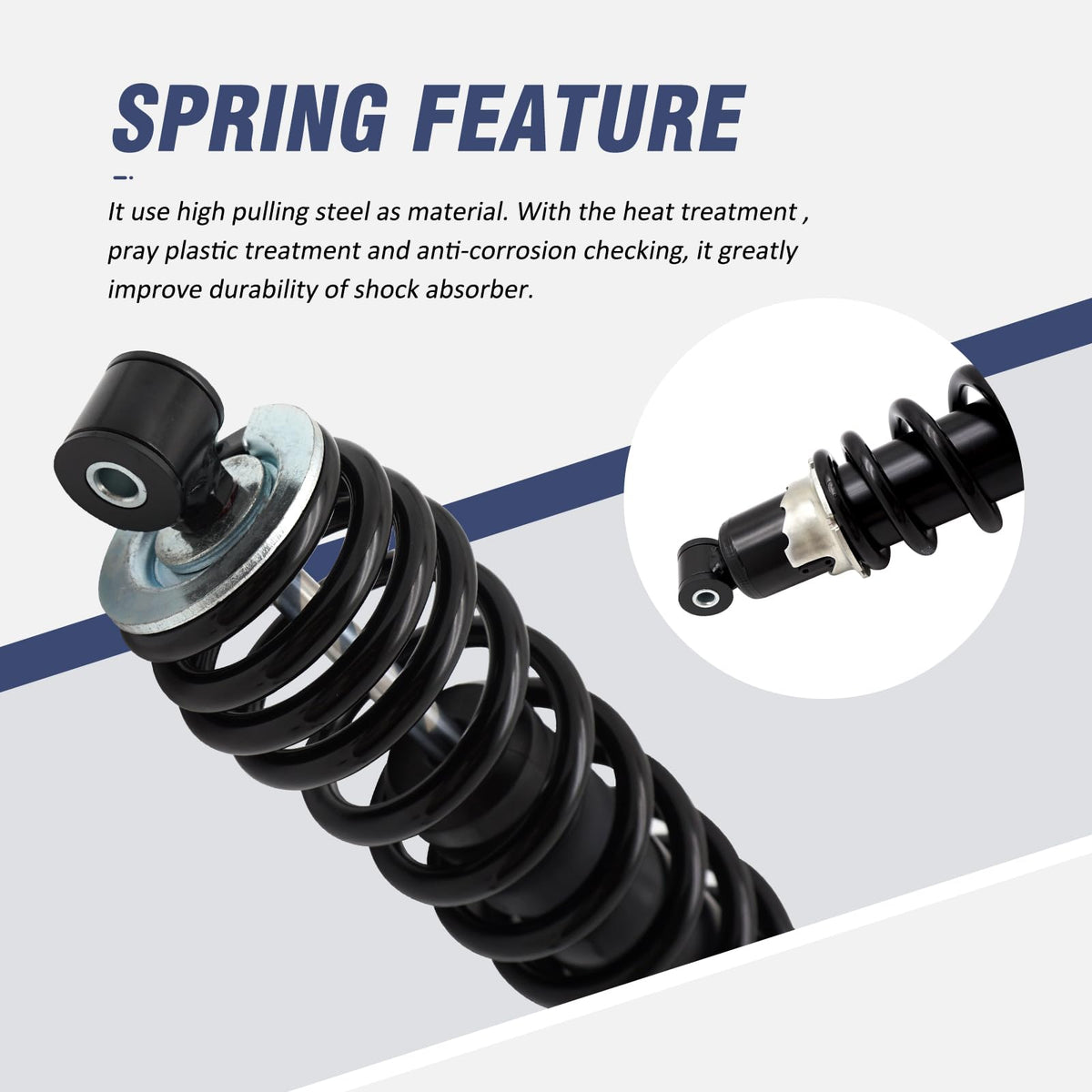 Q: How do these rear shocks improve riding comfort?A: The rear shocks feature a premium design that enhances riding comfort by providing better handling stability, making them ideal for various terrains, including rough roads and high deserts.