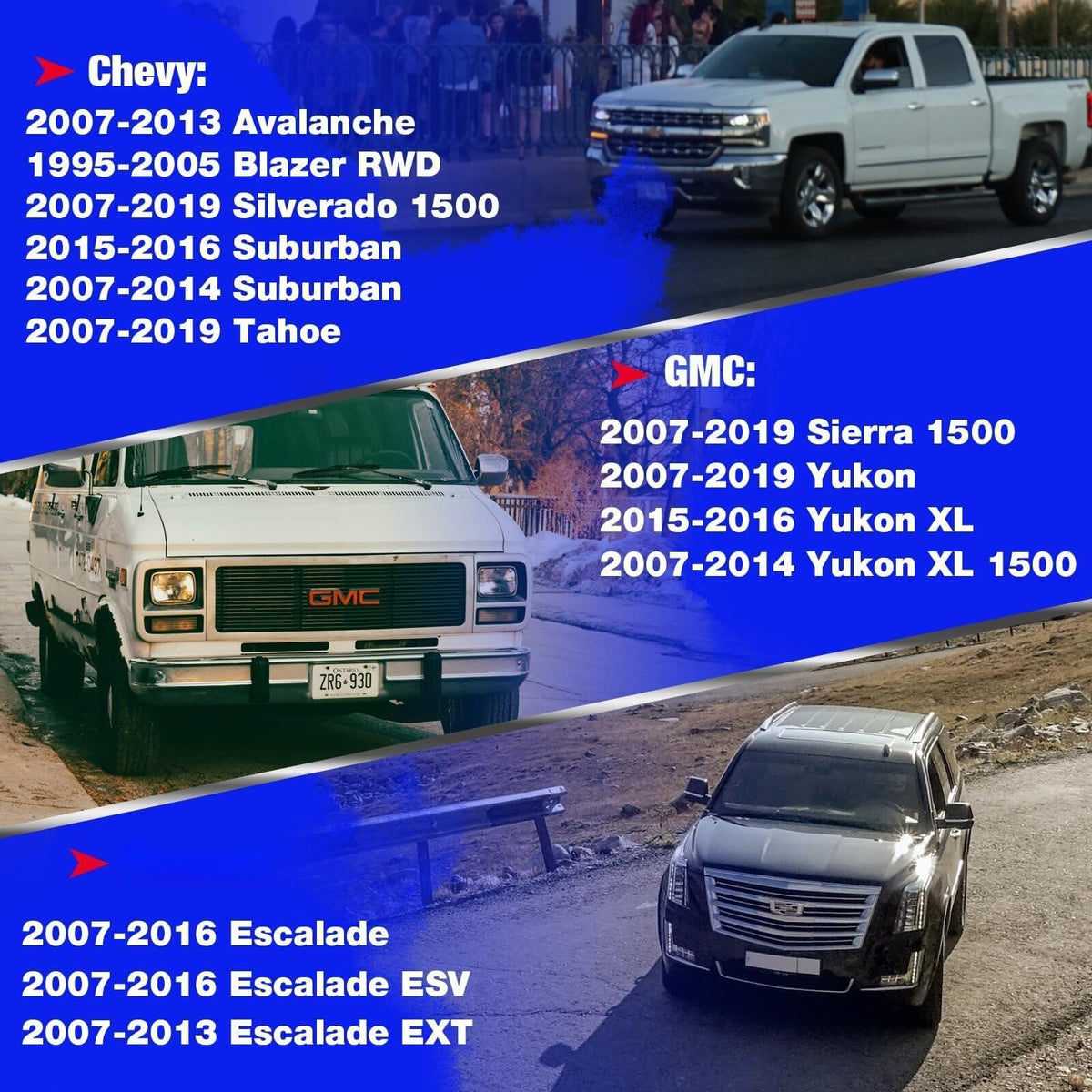 Q: What vehicles are compatible with the KSP Suspension Stabilizer Bar Link?A: The KSP Suspension Stabilizer Bar Link is designed to fit a variety of models including the 2007-2019 Chevy Silverado 1500, Tahoe, 2015-2016 Suburban, 2007-2013 Avalanche, and the 2007-2014 Suburban 1500. It also fits GMC models such as the 2007-2019 Sierra 1500 and Yukon, as well as Cadillac Escalade models from 2007-2016.