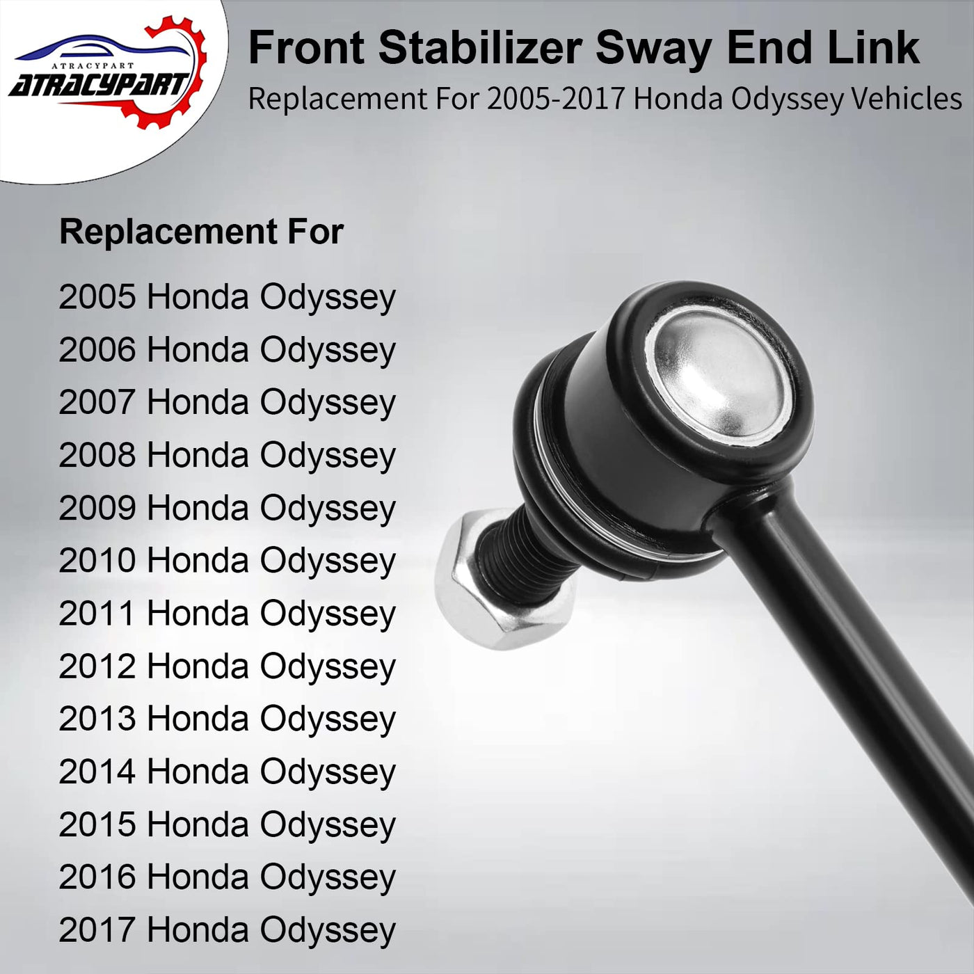 Q: Is the Sway Bar Front Stabilizer Bar End Link compatible with my Honda Odyssey?A: Yes, this sway bar end link is compatible with all models of the Honda Odyssey from 2005 to 2017, ensuring a perfect fit for your vehicle.