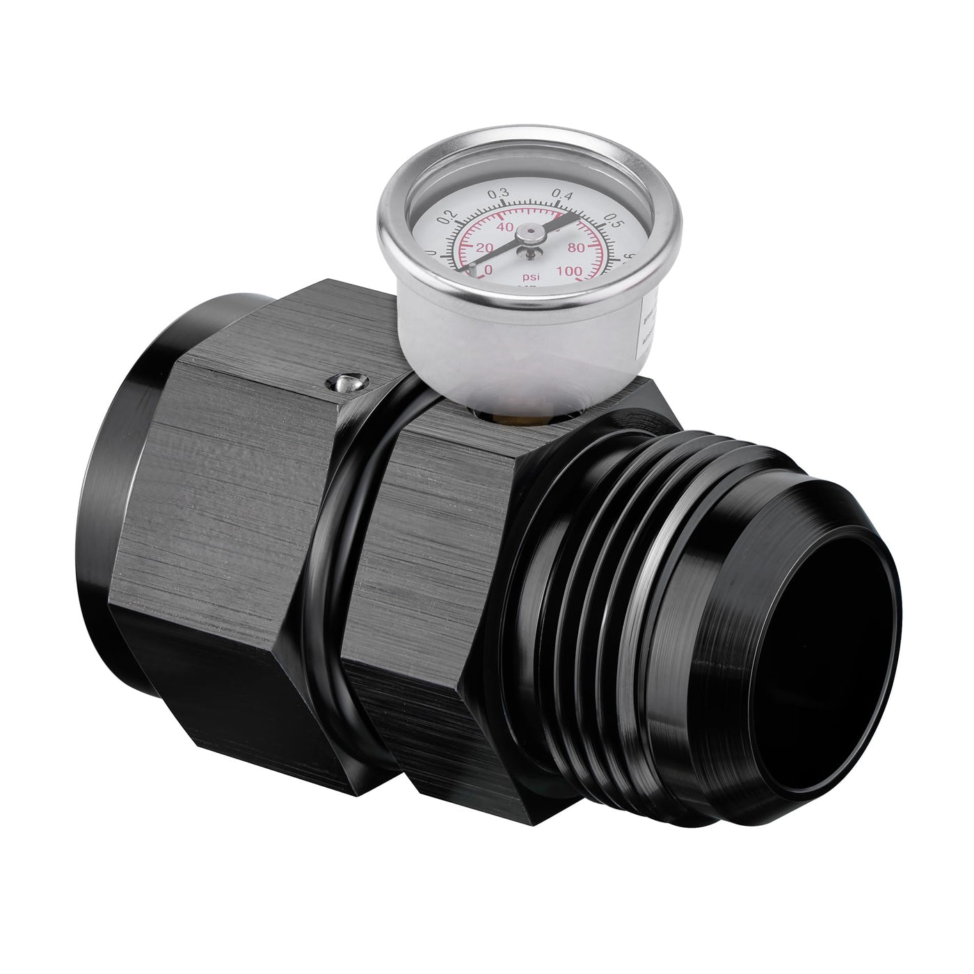 Evil Energy 16An Male Flare To -16 Female Swivel With 1/8 Npt Gauge Port Fuel Pressure Take Off Fitting Adapter Aluminum