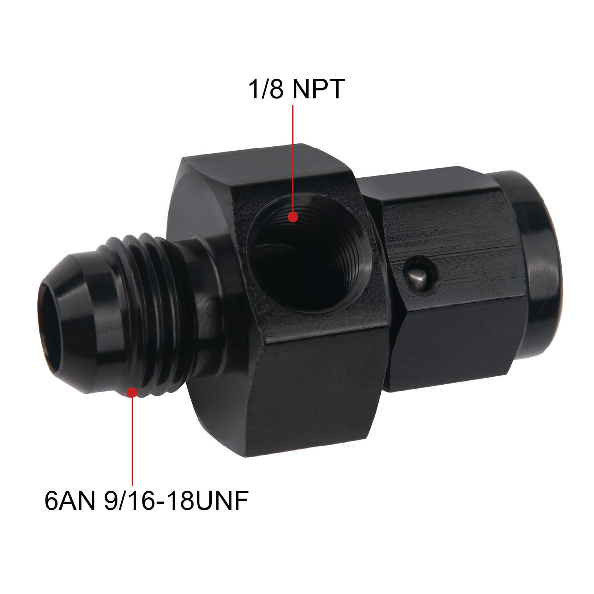 Evil Energy 6An Male Flare To -6 Female Swivel With 1/8 Npt Gauge Port Fuel Pressure Take Off Fitting Adapter Aluminum