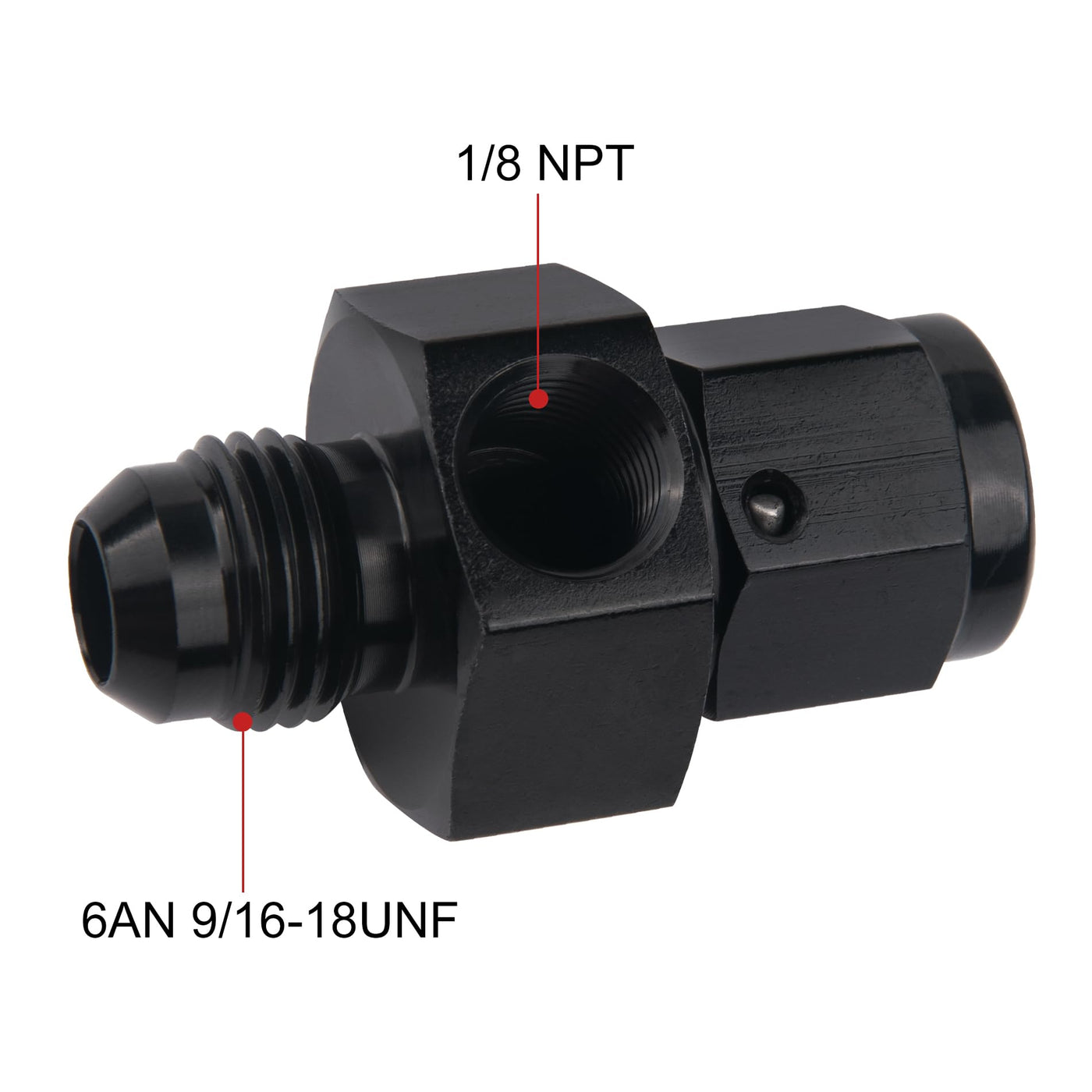 Fuel Pressure Take Off Fitting: An6 Male To -6 Female With 1/8' Npt Gauge/Gage Port,The Thread Size Of The 6An Is 9/16-18Unf. | Sealing: The An Thread Of The Flare Is Sealed By A 37 Degree Angle And The Npt Is Sealed With A 60 Degree Tapered.It Is Highly Recommended To Use Sealant Or Ptfe (Polytetrafluoroethylene Tape) At The Npt Port. | Material: Made Of 6061-T6 Aluminium Alloy. | Max Working Pressure: 1500Psi,Working Temperature: -40°F To 250°F. | Evil Energy Provide 6An Fuel Pressure Gauge Fitting 3-Month Warranty. Any Problem You Might Have,Please Feel Free To Contact Us Via Amazon Message.