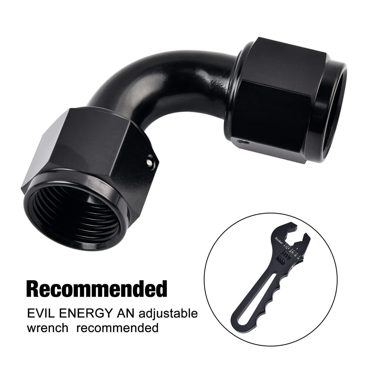 EVIL ENERGY is our brand, we're a direct and professional manufacturer, one of greatest manufacturer and exporter in tuning parts include intake system, exhaust system, fuel system, cooling system, interior and exterior parts. The AN8 female to female flare 90 degree swivel fittings are easy to use, designed by the swivel 360elbow to keep both maintain rotation and hold the tube for proper connection and securing.Widely used in fuel systems,such as fuel filter,fuel tank, and cooling systems,etc.