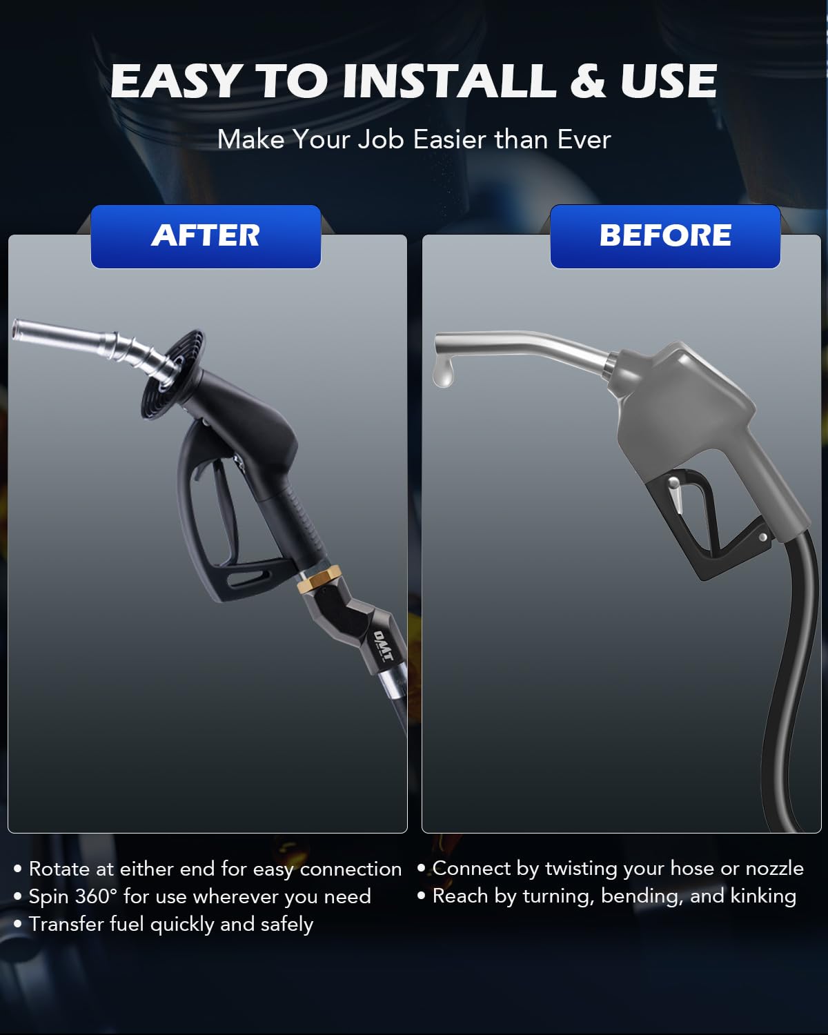 Make your fuel transfer easier than ever with Orion Motor Tech fuel hose swivel! Our fuel swivel boasts a multi plane rotation design, spinning 360 degrees to fill your fuel tanks or vehicles wherever you need. Our hose connectors precision NPT threading offers snug and secure fit for 3/4 inch hoses and nozzles, ensuring safe and leak free operation. The premium zinc alloy and copper construction resists corrosion and high pressure for long-lasting dependable service. Thanks to the intuitive design and provided accessories, this versatile adapter is quick and easy to install and is ideal for transferring gasoline, diesel, kerosene, and more!