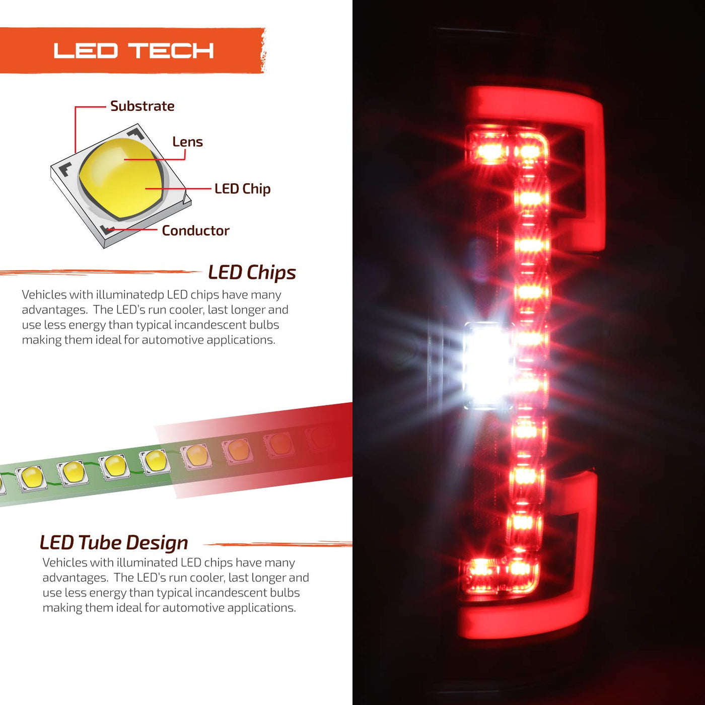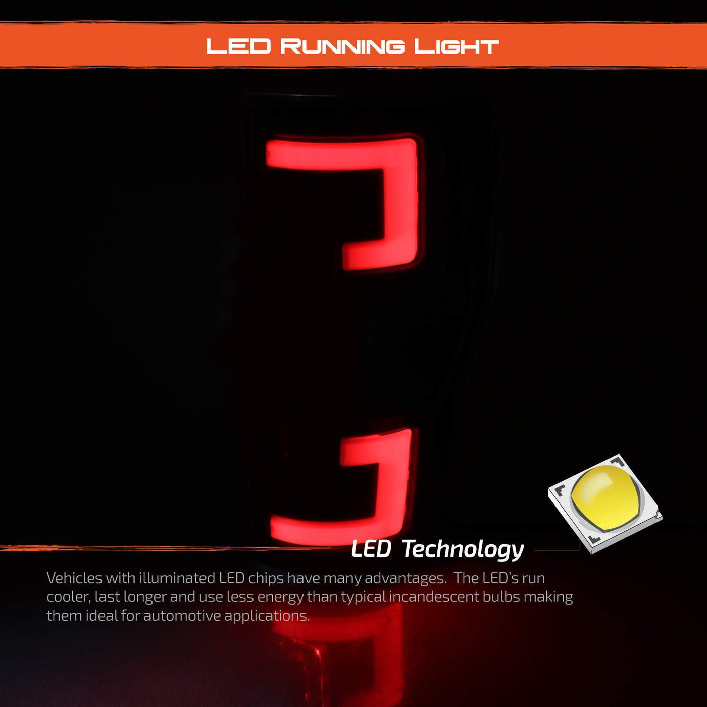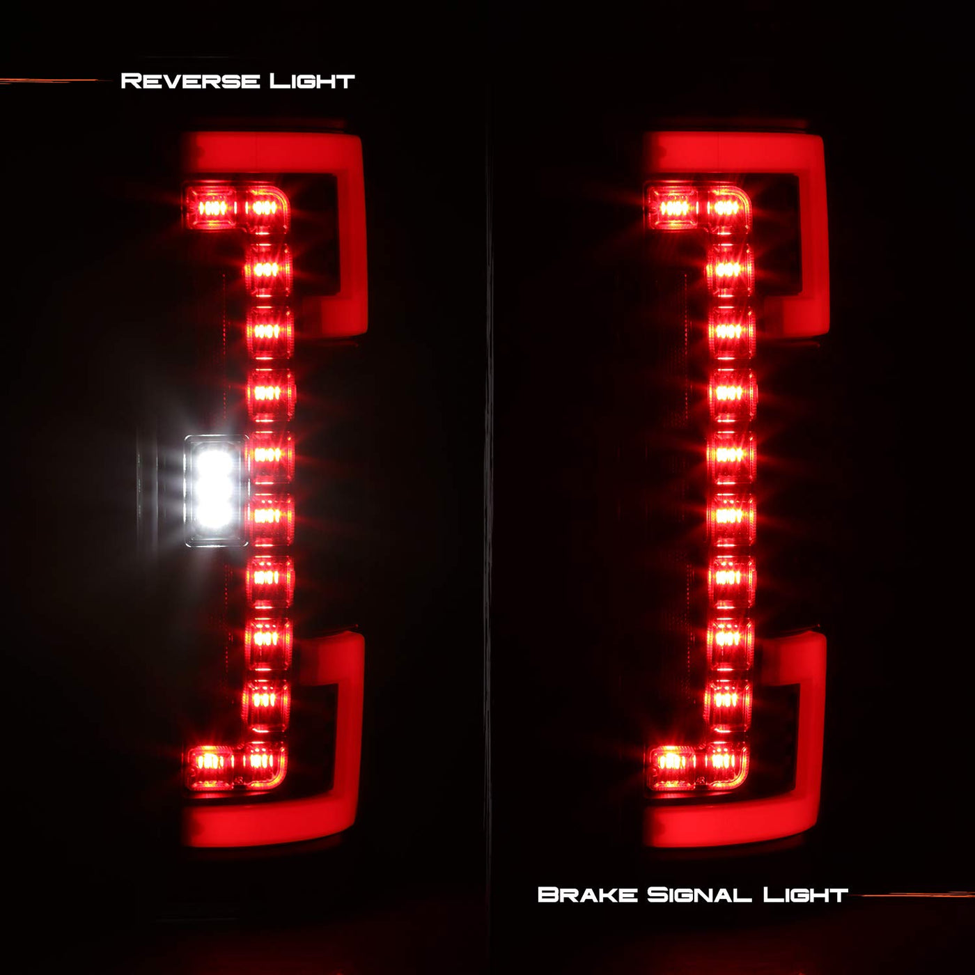 Akkon - Fits 17-19 Ford F250 F350 F450 Super Duty Led Stripe Tube Bar [Blind Spot Monitor] Black Tail Lights Left+Right Pair
