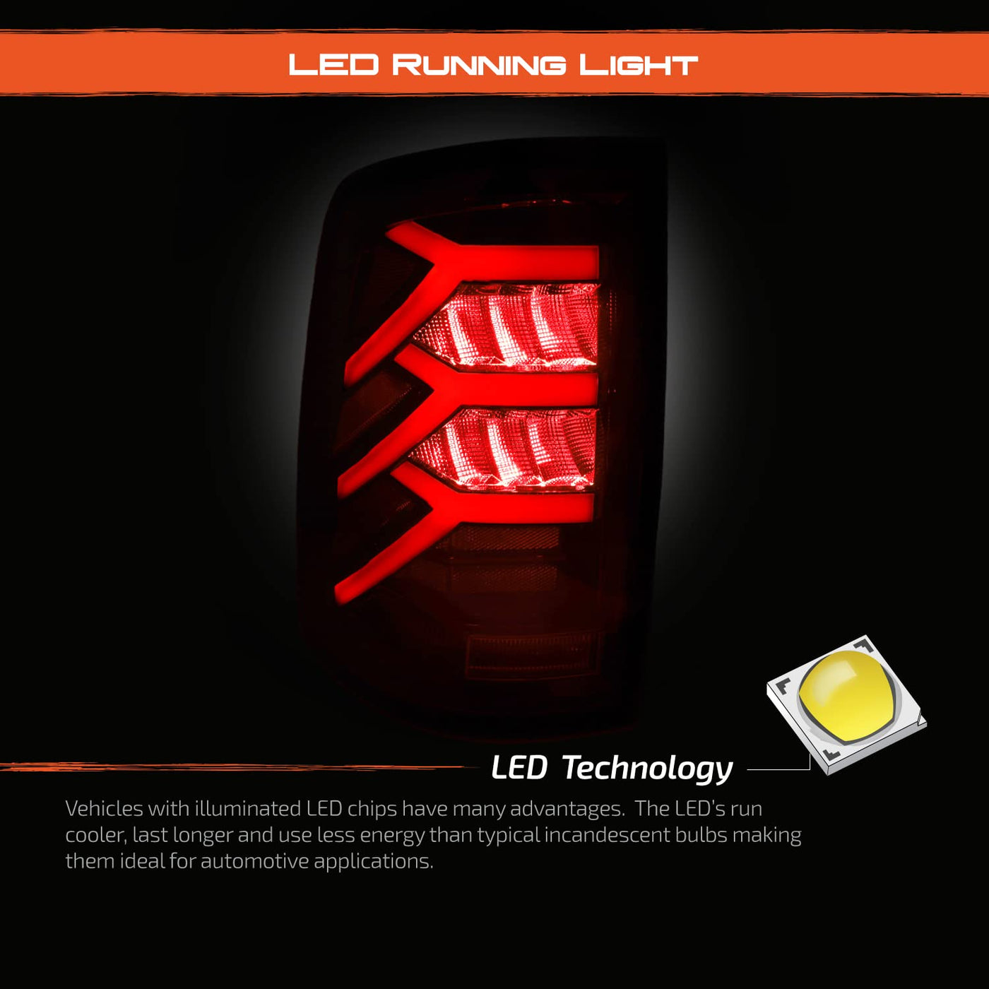Akkon - Fits 2009-2018 Dodge Ram 1500 2500 3500 Truck [Full Led] Black Tail Lights Pair Driver Left + Passenger Right