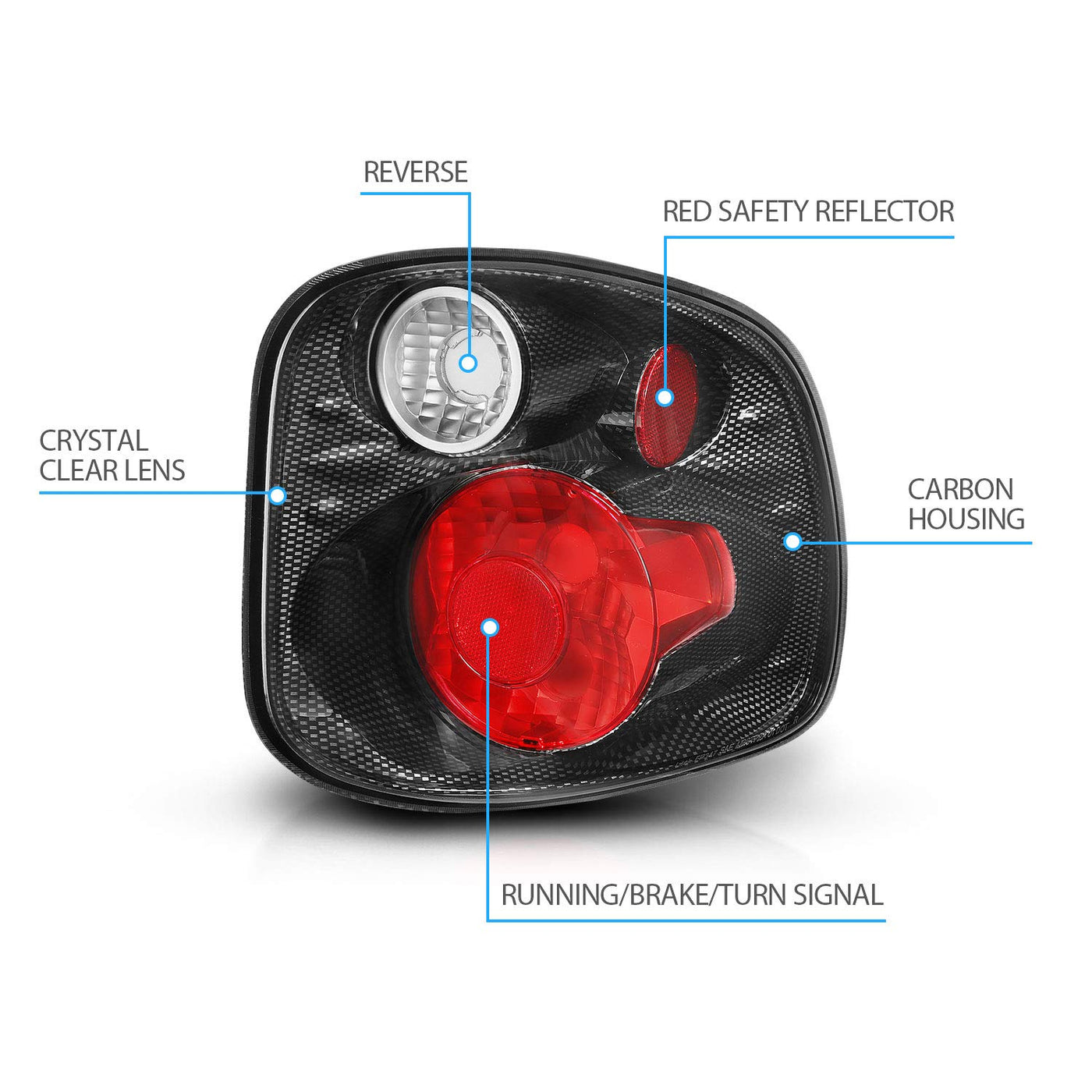 Amerilite For 2001-2003 Ford F-150 Flareside Euro Carbon Fiber Replacement Tail Lights Brake Lamp Pair - Passenger And Driver Si