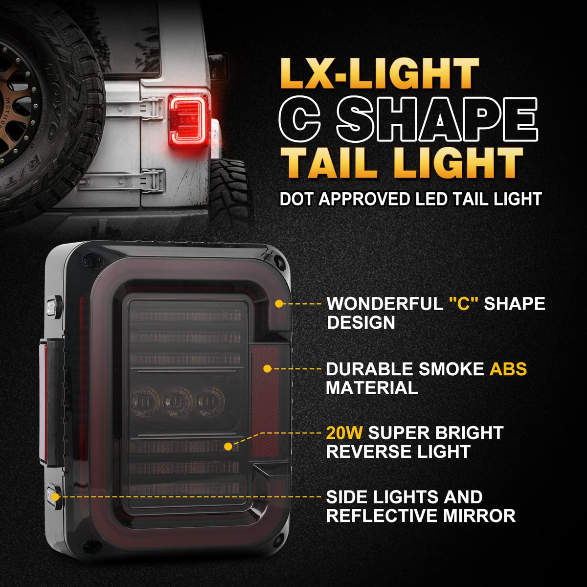 Dot Approved Smoke Lens Led Tail Lights With 20W Reverse Lights For 2007-2017 Jeep Wrangler Jk&Jku Brake Reverse Light Rear Back