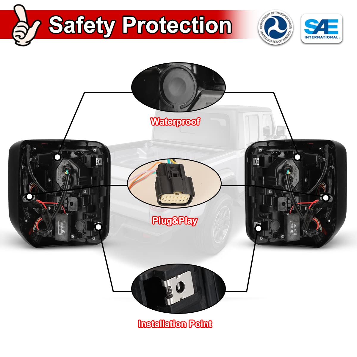 Nixon Offroad Tail Lights For Jeep Gladiator Jt 2018-2023 Tail Lamps Sequential Led Rear Lights Car Rear Lamps Assembly Replacement 1Pair (Matte Black Housing/Smoke Lens)