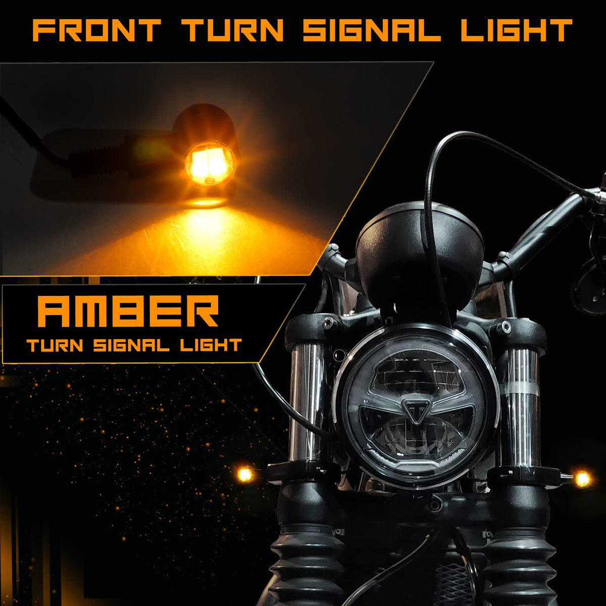 Quasco Front Rear Motorcycle Turn Signals, Mini Size Led Brake Tail Lights Universal Compatible With Harley Honda Suzuki Triumph Yamaha