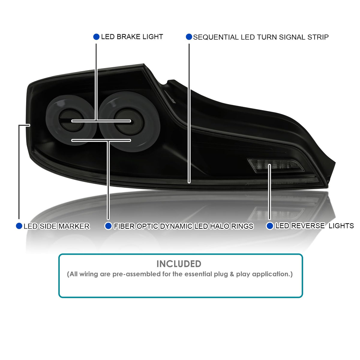 Spec-D Tuning Black Housing Smoke Lens Full Led Tail Lights With Fiber Optic Dynamic Halo Ring And Sequential Turn Signal Compatible With 2003-2007 Infiniti G35, Left + Right Pair Assembly