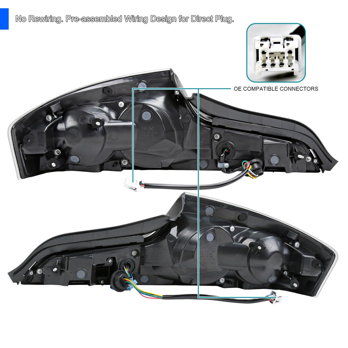 Fitment: Compatible With 2003-2007 Infiniti G35 2Dr Coupe Models Only. (Item Comes With Unlock Trunk Button Cover On The Left Side Tail Light For 2003-2005 Models) (Please Remove Unlock Trunk Button Cover On The Left Side Tail Light For 2006-2007 Models Before Installation). Description: Brand New In Original Box. Comes With 1 Pair Of Driver And Passenger Side Black Housing Smoke Lens Full Led Tail Lights With Fiber Optic Dynamic Led Halo Rings With Breathing Light Effect. (Will Be Activated When Turn On Parking Lights). Sequential Led Turn Signal Light Strip. Brake Light Bulbs : Led Bulbs. Reverse Light Bulbs : Led Bulbs. Side Marker Light Bulbs : Led Bulbs. Made By An Iso Certified Manufacturer Using Materials That Meet Strict Oem Requirements. No Installation Instruction Included. Professional Installation Is Highly Recommended.
