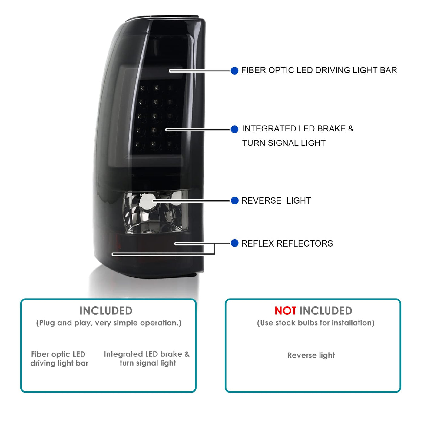 Spec-D Tuning Black Smoke LED Bar Tail Lights Compatible with 1999-2002 Chevy Silverado GMC Sierra 1500/2500/3500 Models Left +
