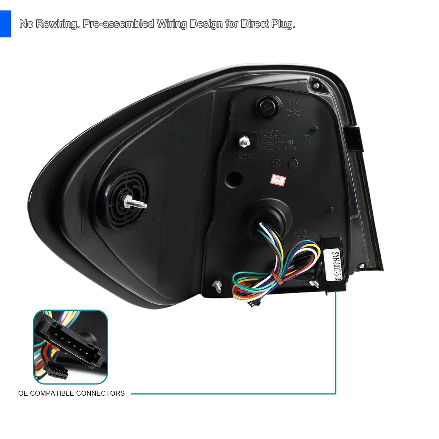 Q: What materials are used in the construction of these tail lights?A: These tail lights are made by an ISO Certified Manufacturer using high-quality materials that meet or exceed OEM requirements. They include a polycarbonate lens that is impact and UV resistant, ensuring durability and longevity.