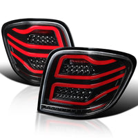 Spec-D Tuning Jet Black Housing Clear Lens Red Led Bar Tail Lights Compatible With 2006-2011 Mercedes-Benz W164 Ml-Class Left + Right Pair Assembly