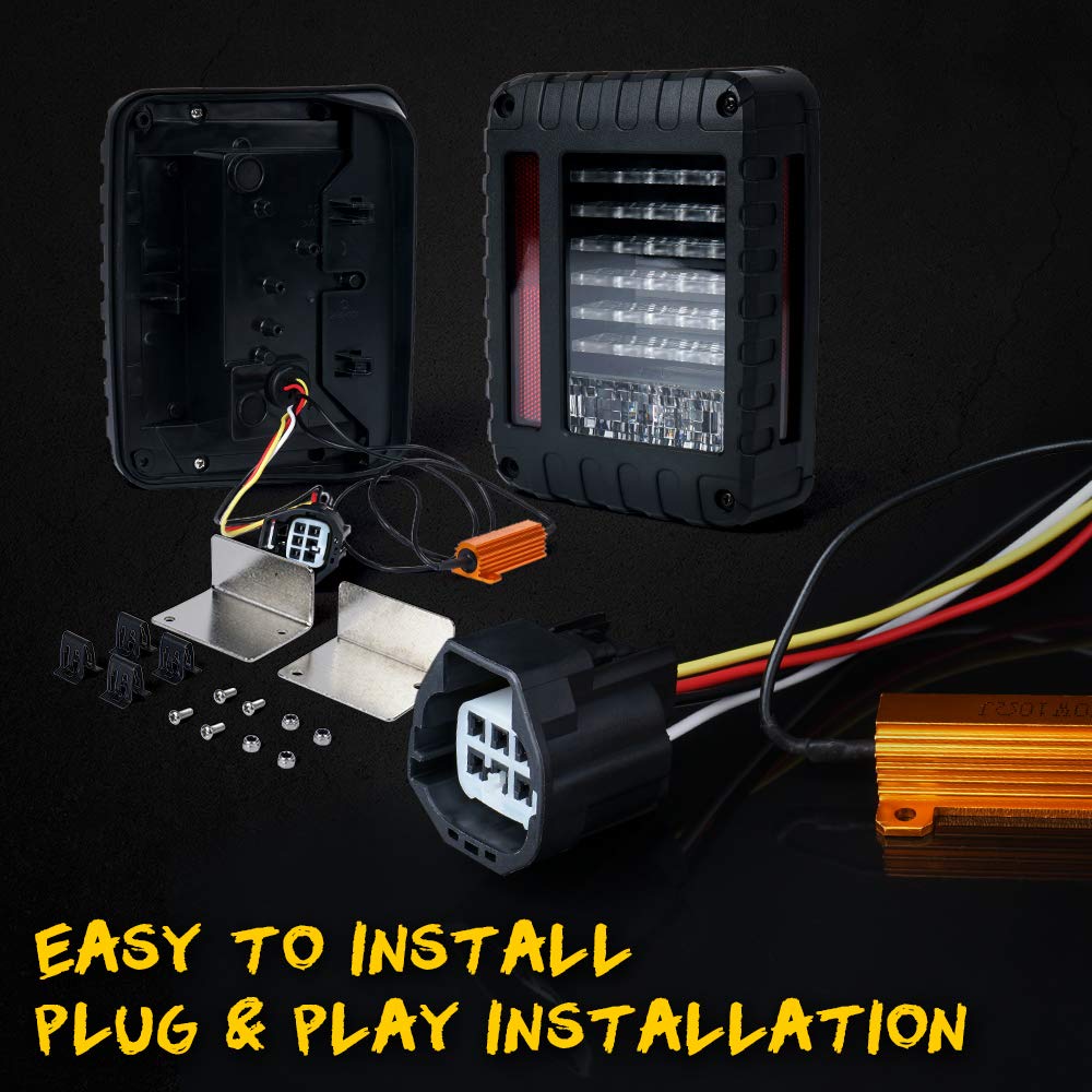 Xprite Tail Lights with Rear Brake Turn Signal & Reverse Lights Function, LED Rear Lights Compatible with 2007-2018 Jeep Wrangle