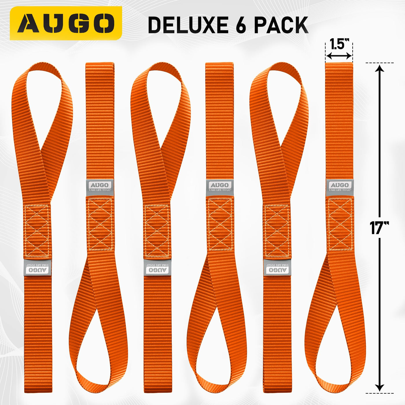 Augo Heavy Duty Soft Loops -Pack Of 6-1.5 X 17 Tie Down Anchor Straps For Use W/Ratchet Strap Hooks - 3000Lb Load Capacity