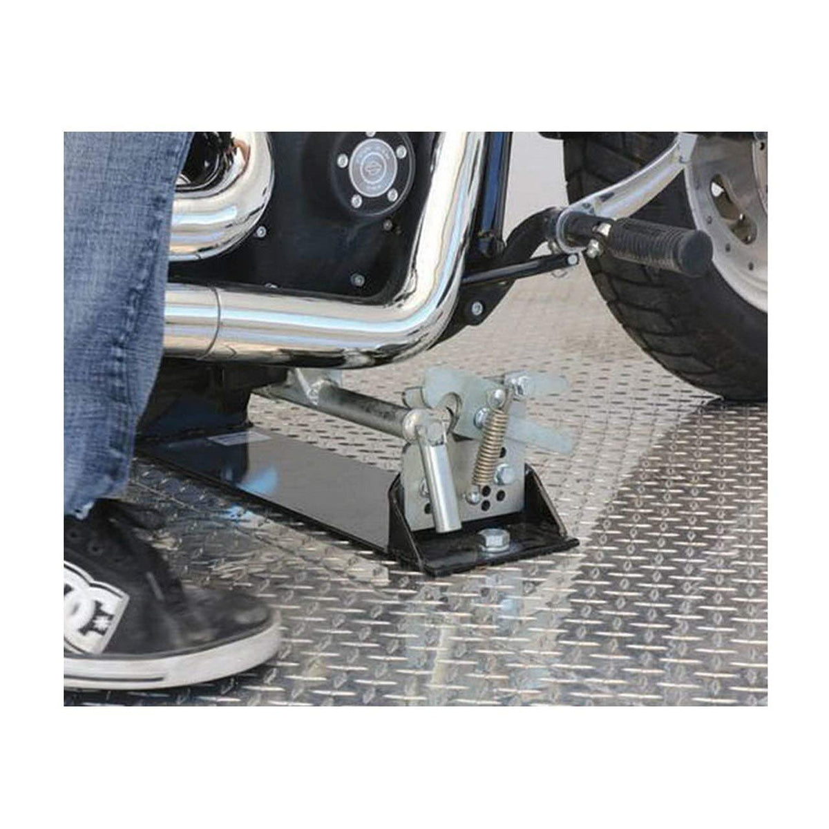 Load and unload your Harley Davidson in less than a minute by yourself. No assistance needed. Drive over steep, pitched terrain with your bike securely latched. Adjustable clamping bar with neoprene lined clamps prevents scratches. Always remove clamping bar when not trailering. Your motorcycle's suspension is not stressed. When the rider dismounts, the bike's suspension system remains slightly compressed, exerting just the right amount of upward pressure to maintain rigid stability without stressing the suspension components. A bike secured with a Biker Bar becomes an extension of the trailers suspension system, instead of amplifying it as an active bike suspension system would. Let your trailer suspension do the work. Latching system easily unbolts from the trailer without crawling underneath, freeing up your trailer for other things. Can be mounted in your garage for safely storing your bike. Diameter Frame Tube 1.250 to 1.375 Width 4.5 to 7 inch Harley Davidson XL and XR Models. If you are unsure if your bike fits please ask before purchasing. Minimum Bike height 3.5 inches.